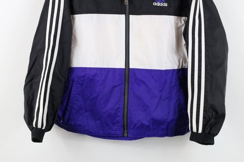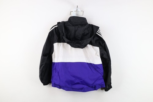 Vtg 90s Adidas Boys Small Spell Out Color Block Lined Hooded Windbreaker Jacket