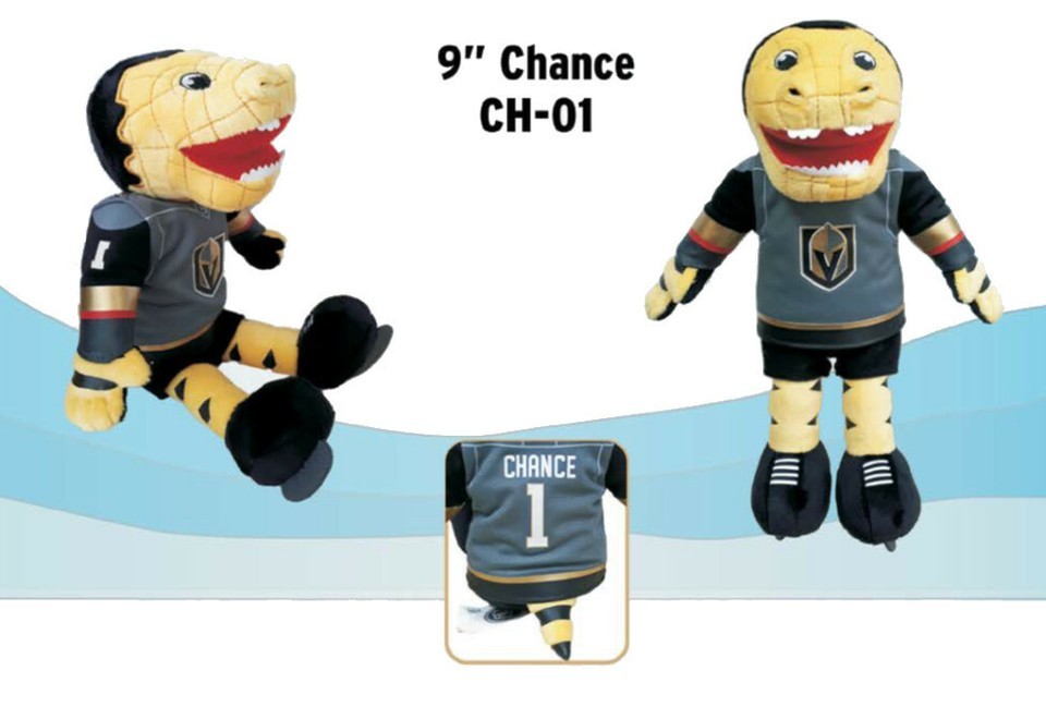 Las Vegas Golden Knights Chance 9 Inch HighStuffed Animal Plush Doll ToyOfficially Licensed NHLThe Vegas Golden Knights mascot is Chance the Gila monster. Chance fell in love with hockey and his Golden Knights the first time he set foot on the rink. He never gets tired of cheering, strutting, dancing, and revving up the crowd to help lead his team to a victory. This listing is for one plush, the pictures show multiple views and additional sizes are sold separately.Message us for other mascots!