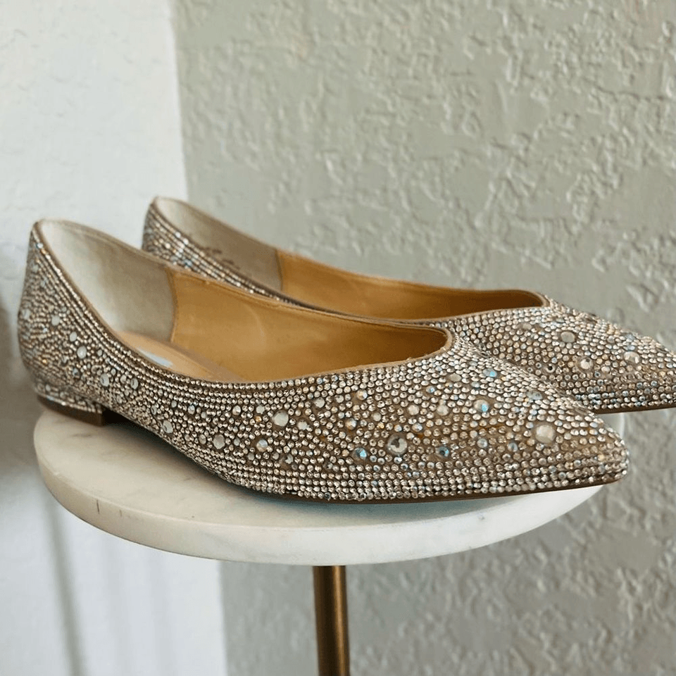 BETSEY JOHNSON Rhinestone Crystal Pave Pointed Toe Flat, SPARKLE, Size 8.5, NWOT