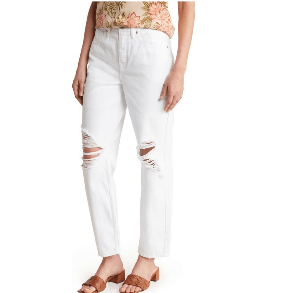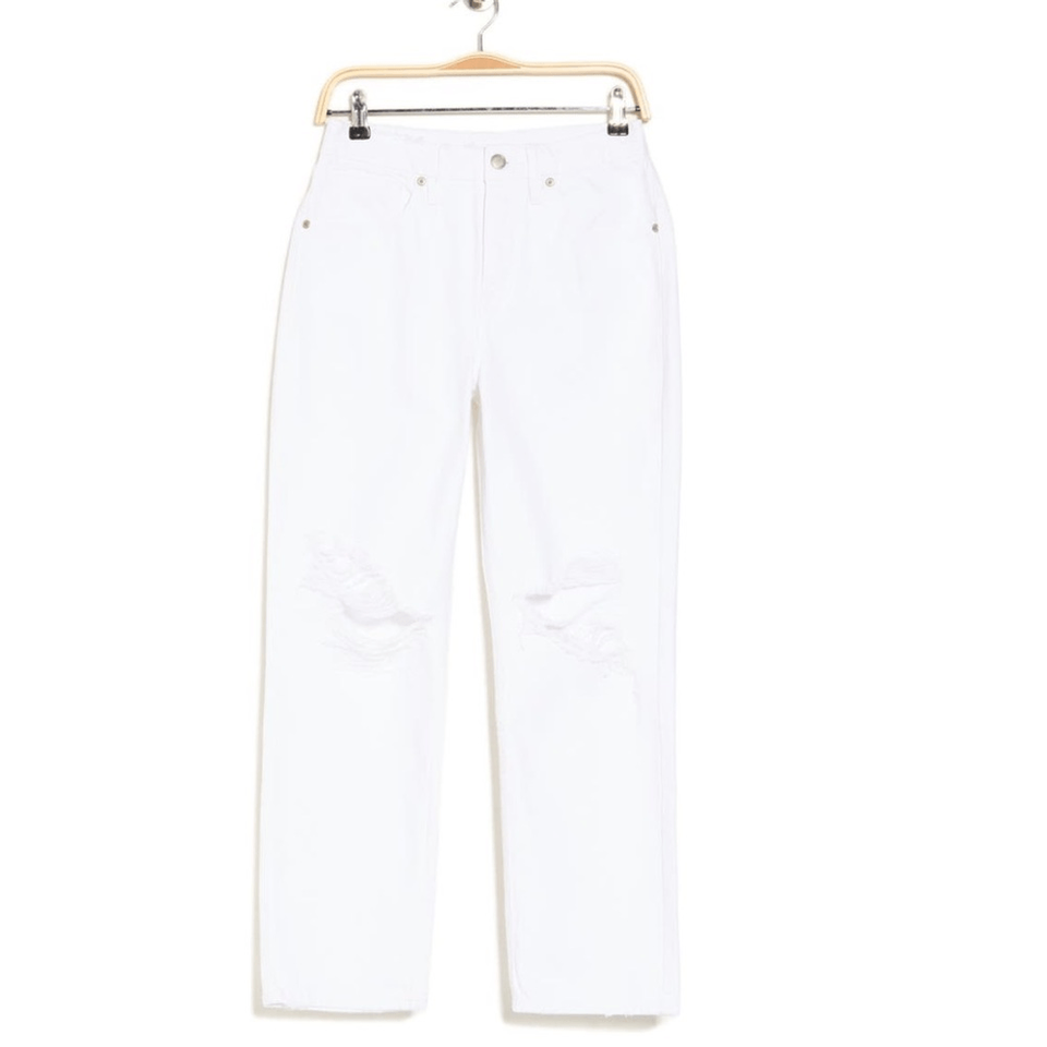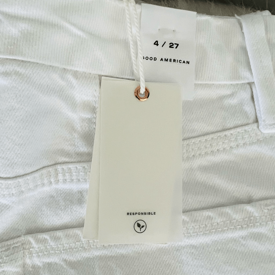 Good American Good 90s Ripped High Waist Straight Leg Jeans, White, Size 4 NWT