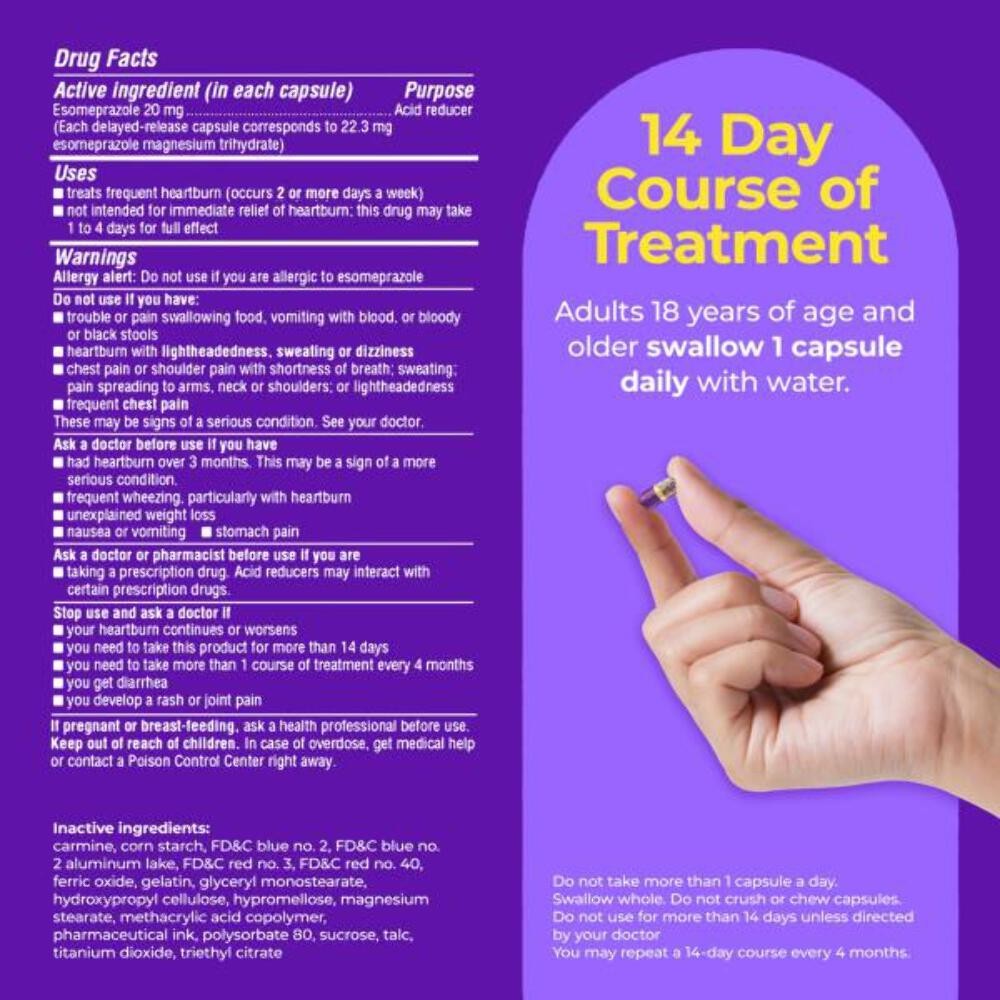 Expiration Date of 02/2027 ? Contents: 42 Nexium 24HR ClearMinis Acid Reducer Heartburn Relief Delayed Release Capsules for All-Day and All-Night Protection from Frequent Heartburn, Heartburn Medicine with Esomeprazole Magnesium provides complete protection from heartburn ? Blocks Acid at the Source: Acid reducers that turn the body's acid pumps off for complete heartburn protection (2), mini capsules contains all the power of Nexium 24HR Frequent Heartburn Protection in a pill over 1/3 smaller to be easier to swallow ? Once Daily Heartburn Medicine: Just one clear mini capsule daily provides 24 hour relief, letting you get through your day and sleep restfully at night without heartburn interruptions (1) ? Stops Acid Before It Starts: Esomeprazole magnesium delayed-release capsules shut down stomach's active acid pumps to treat frequent heartburn all day and all night ? Nexium 24HR acid reducers: Keep on hand for frequent heartburn ? Use As Directed: May take 1-4 days to reach full effect ? HSA and FSA eligible product