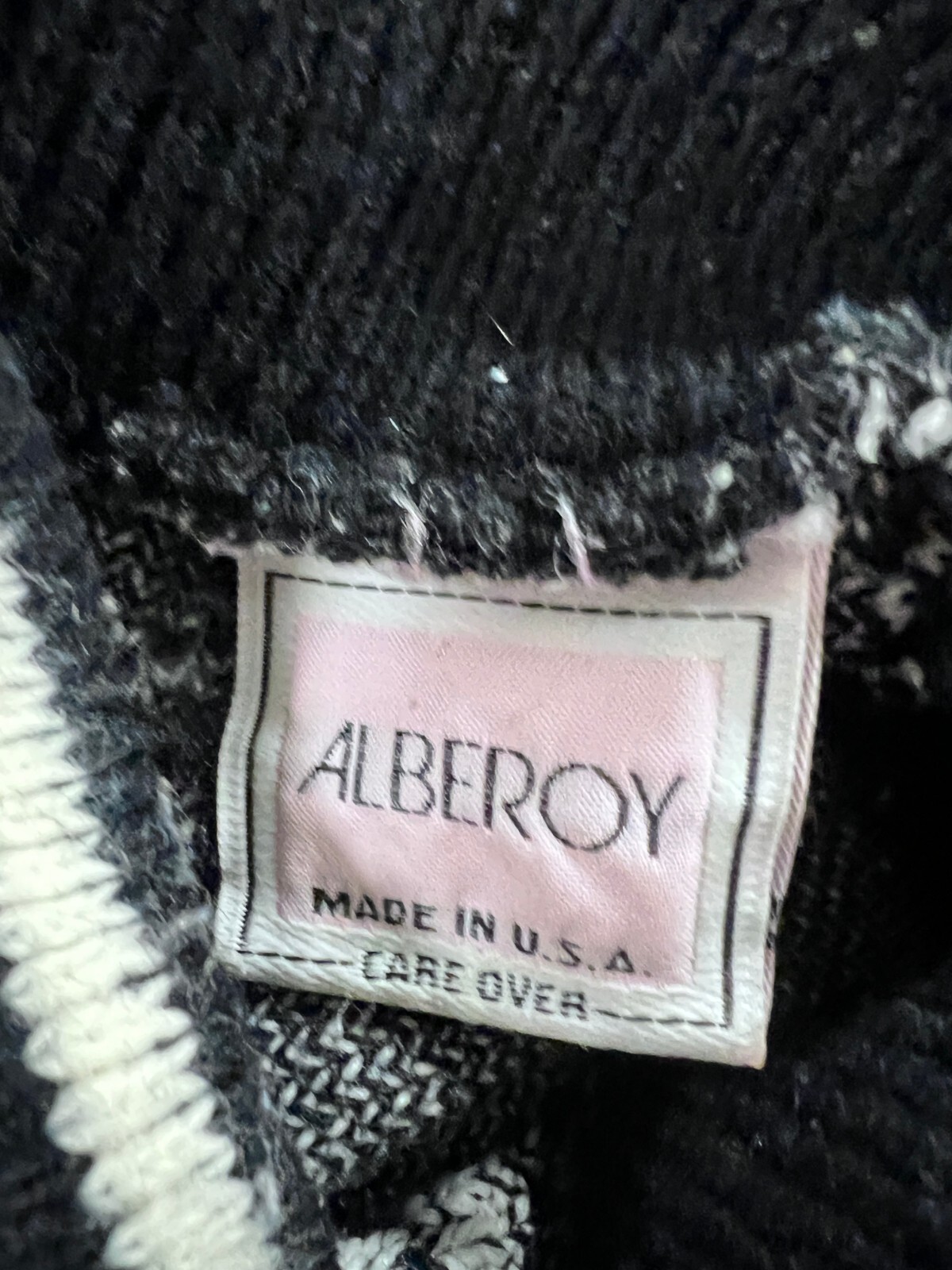 Alberoy was a niche label producing bold graphic sweaters during the 1980s, aligning with the era?s love of oversized knits, geometric designs, and black-and-white contrast. Such pieces epitomize postmodern fashion trends and the ?crazy pattern? knitwear craze popularized in streetwear and club culture. Collectible today for both its novelty and graphic punch.