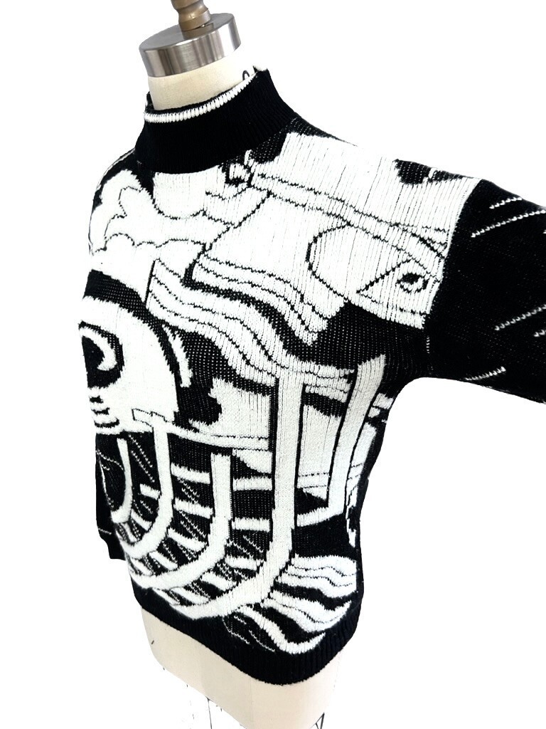 100% acrylic, black-and-white abstract knit, dropped shoulders, Alberoy label