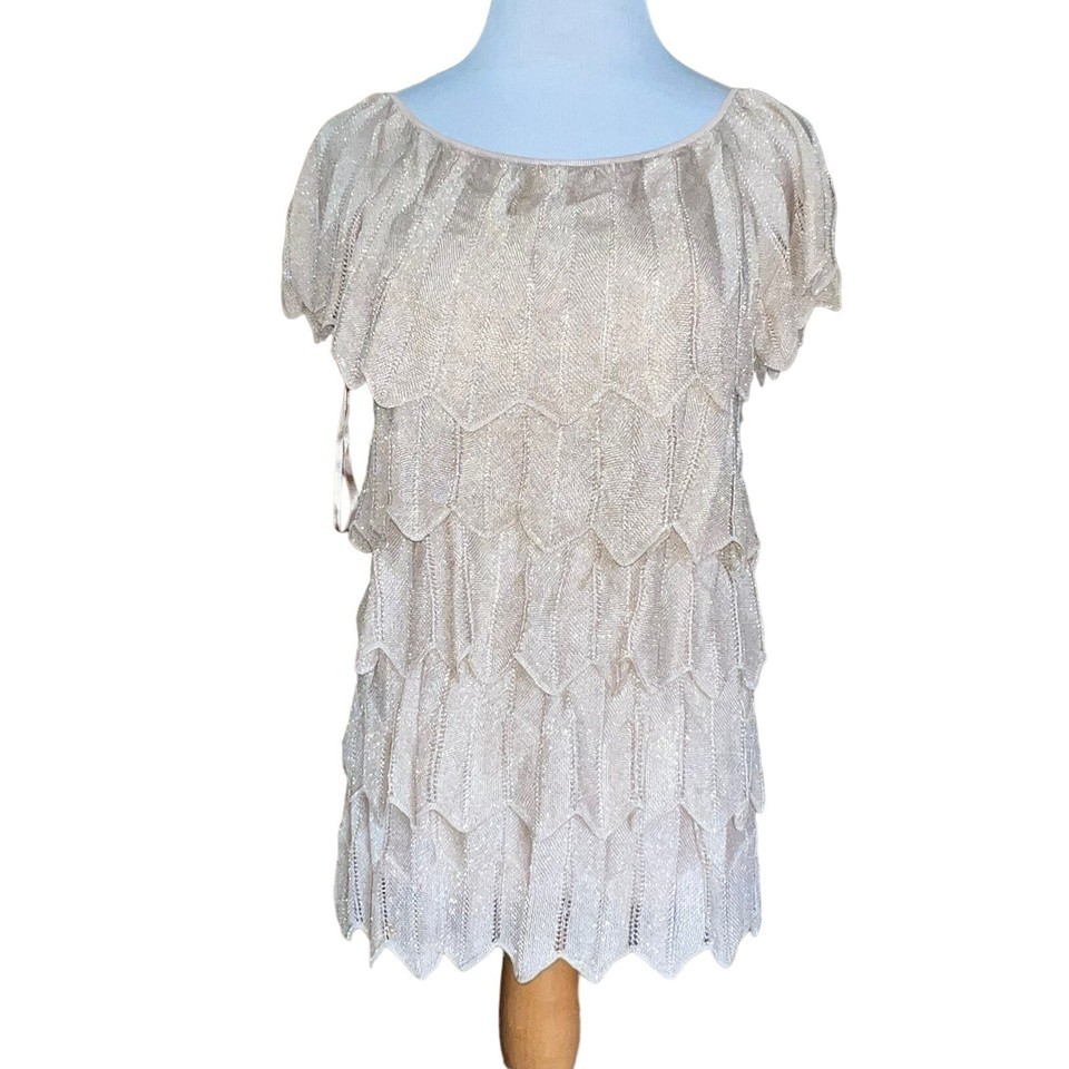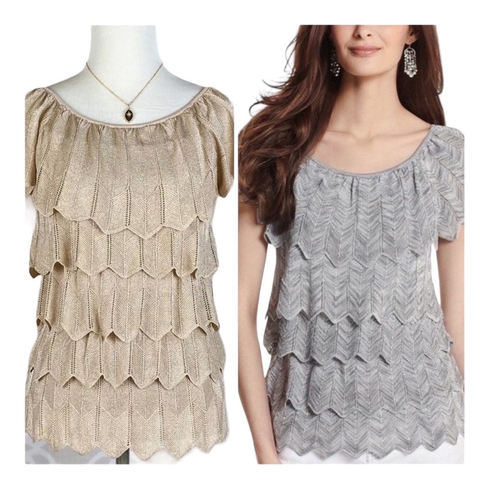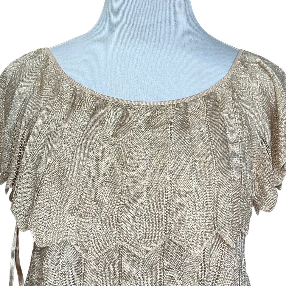 White House Black Market WHBM Gold Shimmer Metallic Tiered Blouse Size Small