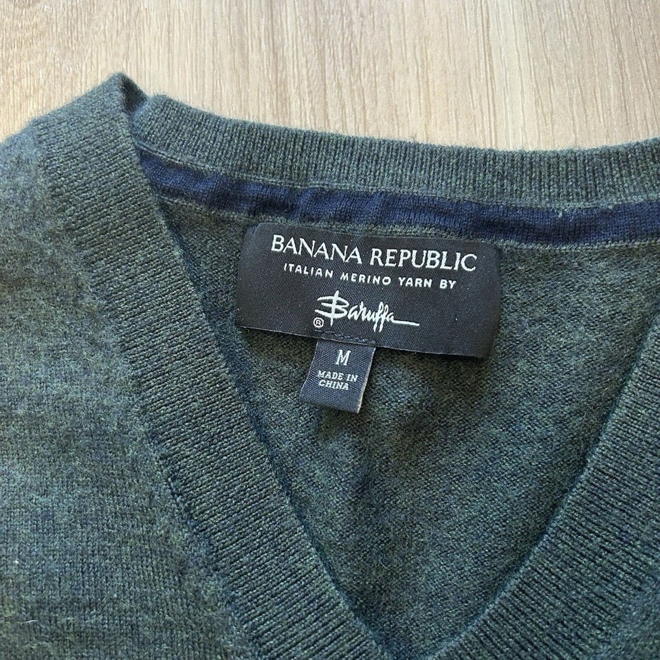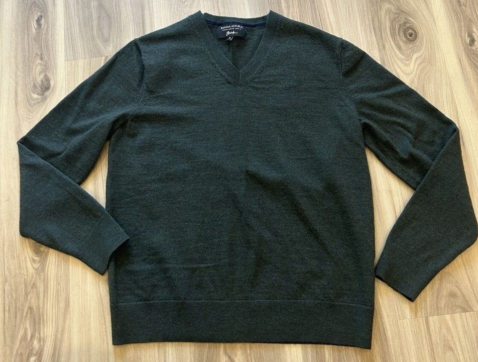 Banana Republic V-Neck Green Sweater Size M 100% Merino Wool by Baruffa EUC