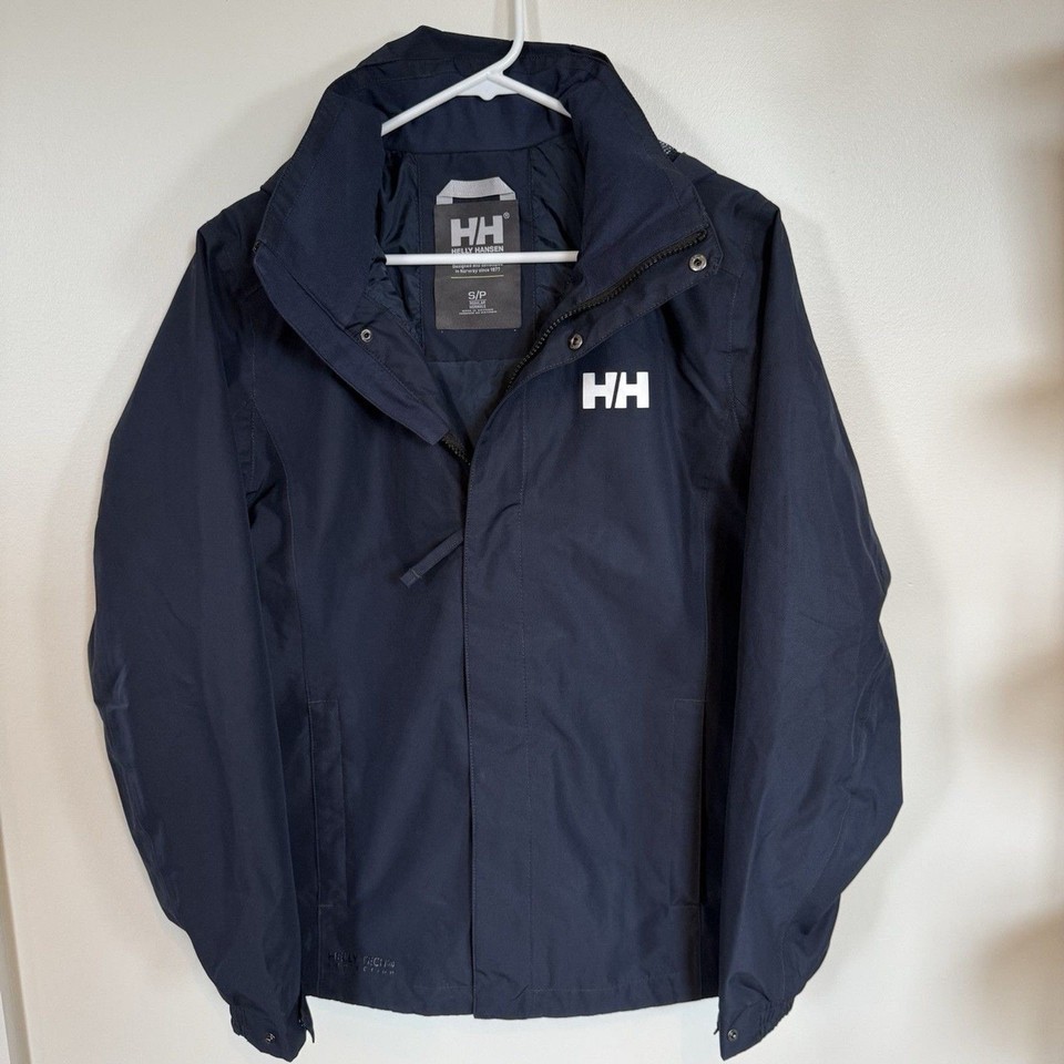 Helly Hansen Men's Size S Helly Tech Hooded Rain Jacket Navy Blue EUC Read Desc