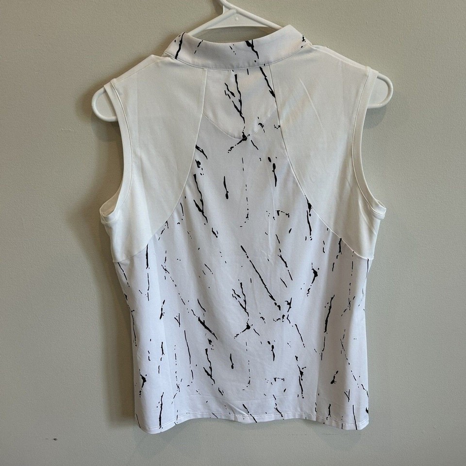 * Gray short sleeve 1/4 zip polo and white sleeveless mock-neck top