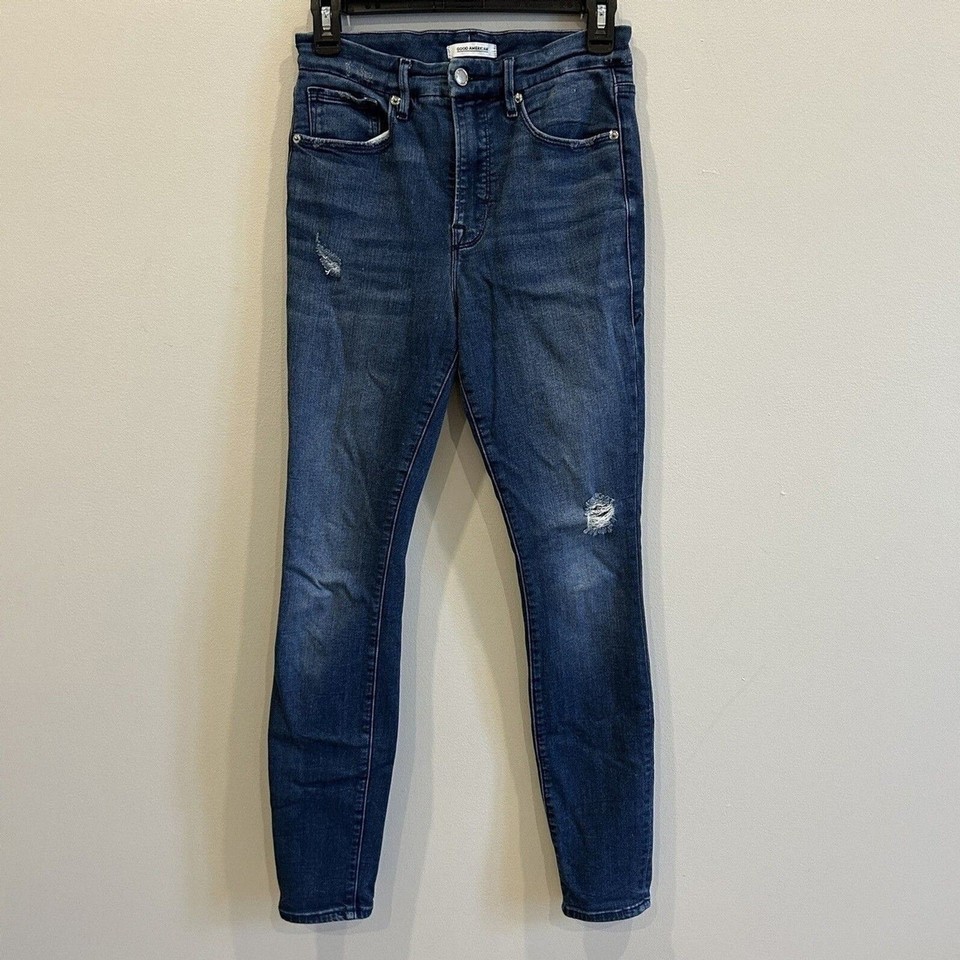 Good American Good Waist Distressed Skinny Blue Jean Womens 4/27 Great Condition