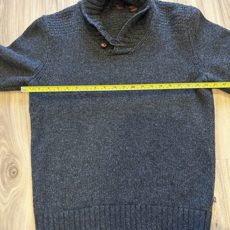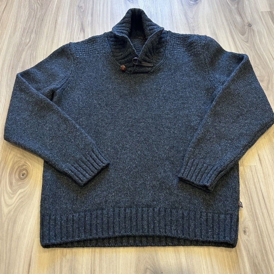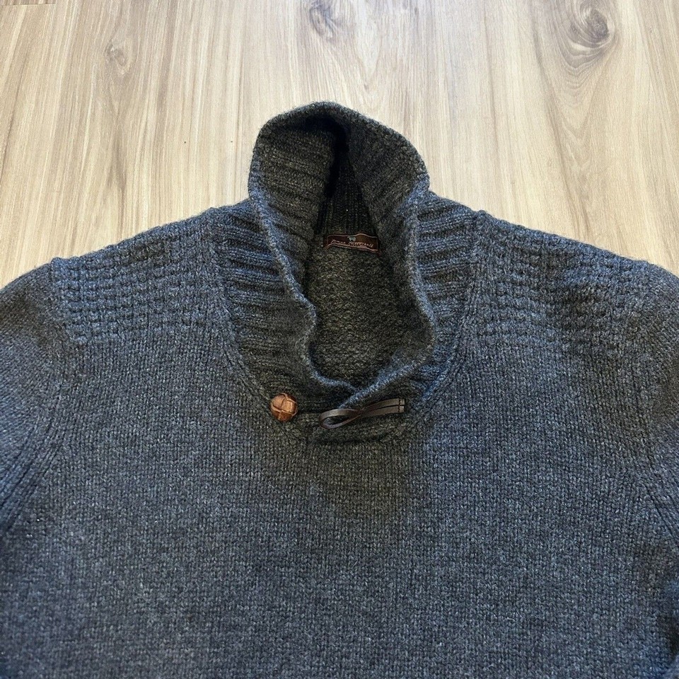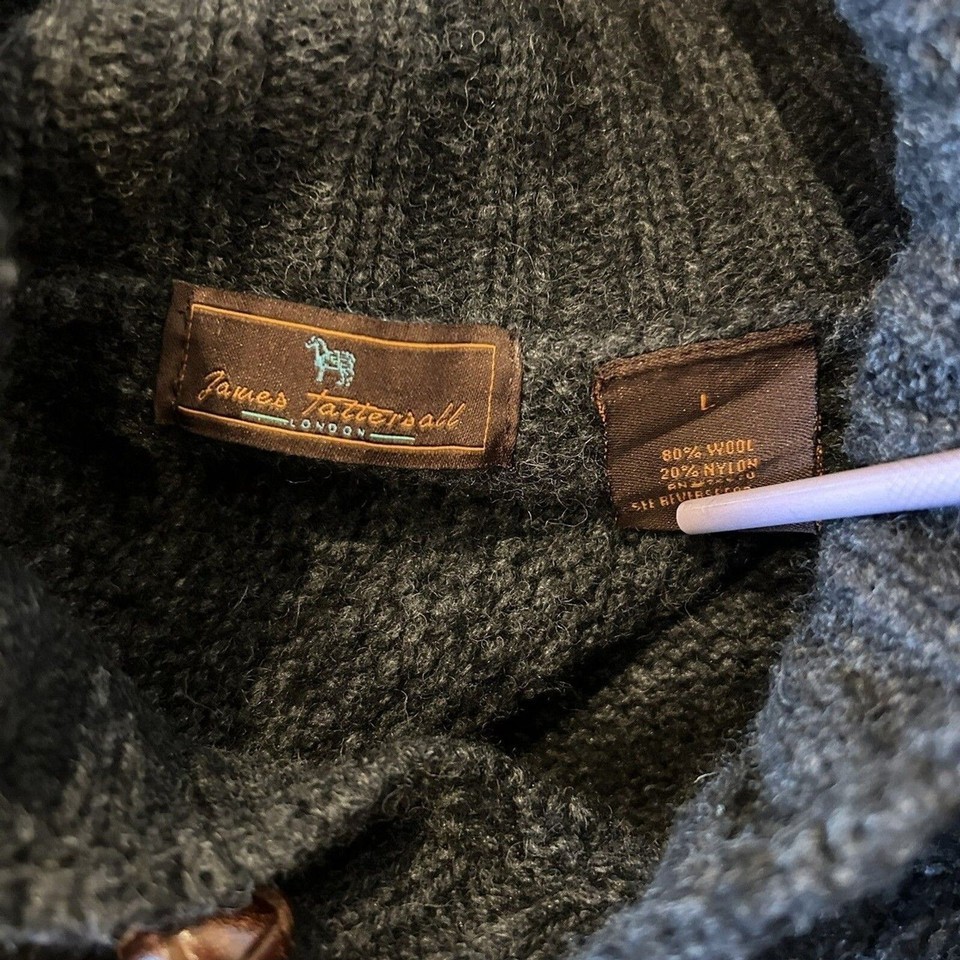 JAMES TATTERSALL LONDON Charcoal Shawl Neck Sweater Leather Closure Wool Blend L