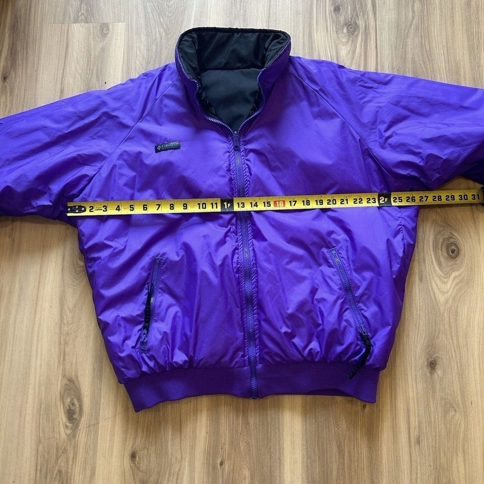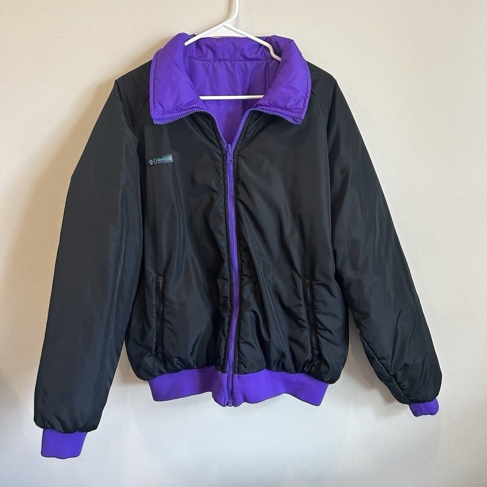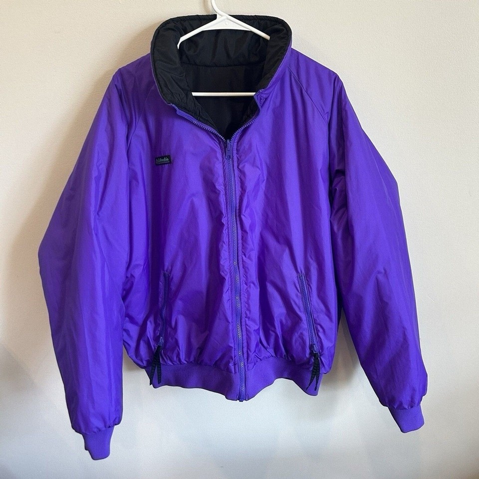 Vtg Columbia Men's XL Reversible Bomber Insulated Nylon Black Purple EUC Read