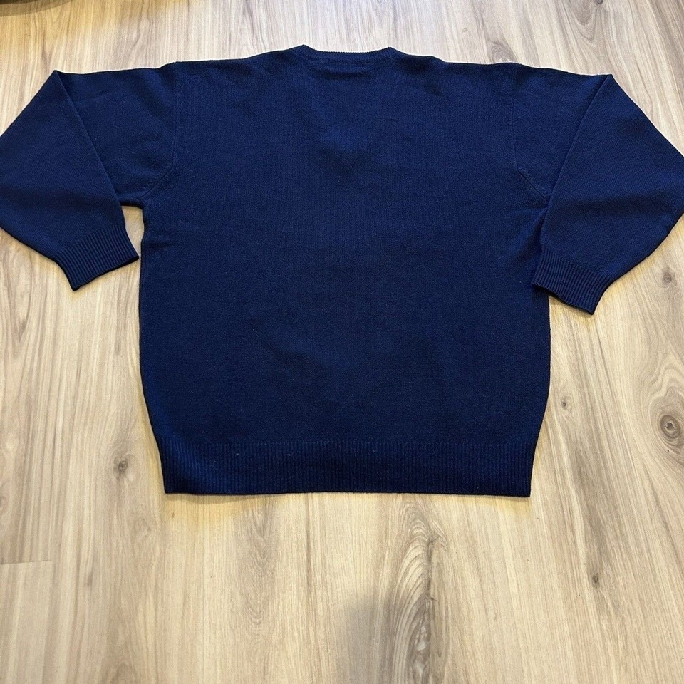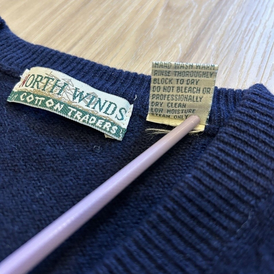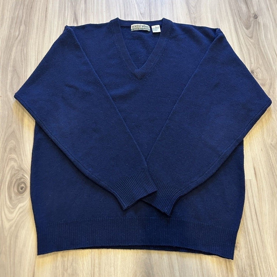 Vintage Cotton Traders North Winds Men's V-Neck 100% Lambswool Sweater Blue L