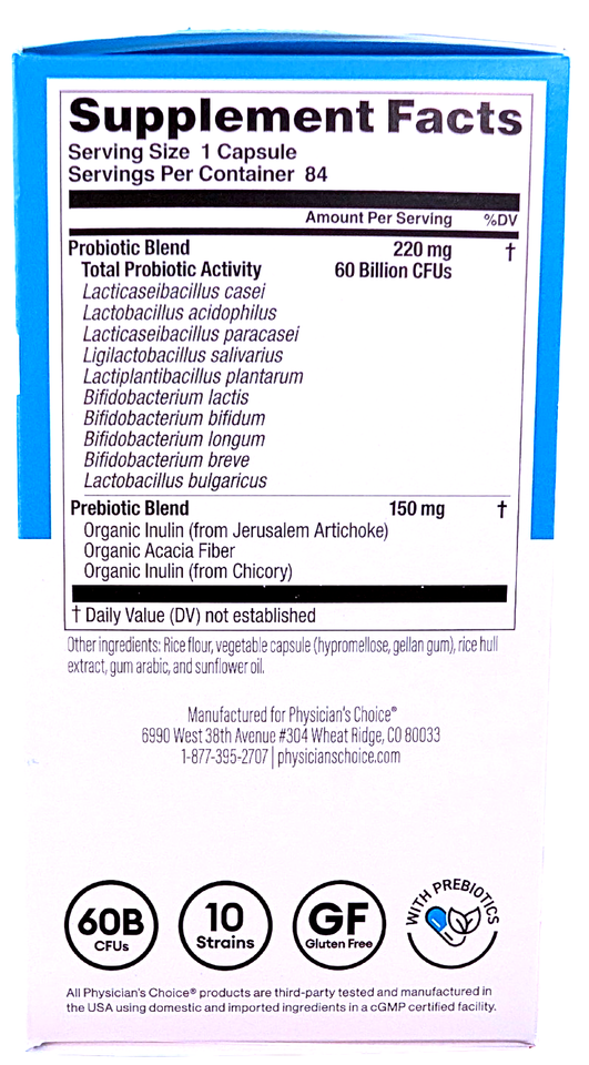 Physician's Choice 60 Billion CFU Probiotic Capsules 84 Count EXP 02/2027
