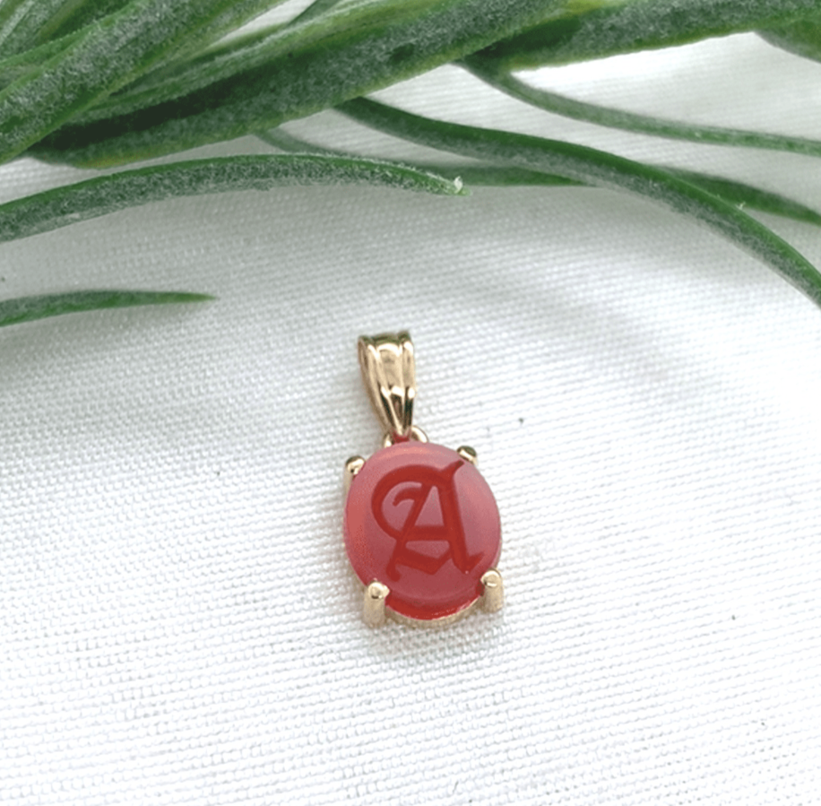 14k Yellow Gold Genuine Natural Carnelian Signet Initial "A Pendant (#J7345)