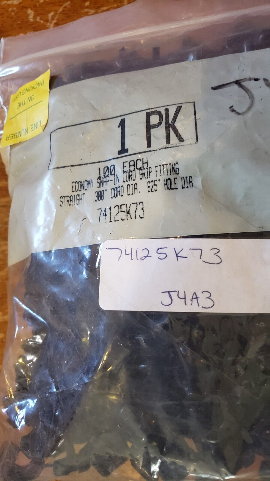 NEW LOT of 100 Strain RELIEF Snap-In CORD GRIP .300" cord diameter / .625" Hole # 74125k73 FREE USA SHIP Give me a break! This is awesome for your factory/shop needs. Get yours today. Please CHECK out my other electrical/crimp components. We bought off a business that was going under. I will give you a deal on multiples. NEW Working Condition Will ship international. FREE USA SHIP. please ask questions. Please look at pictures.