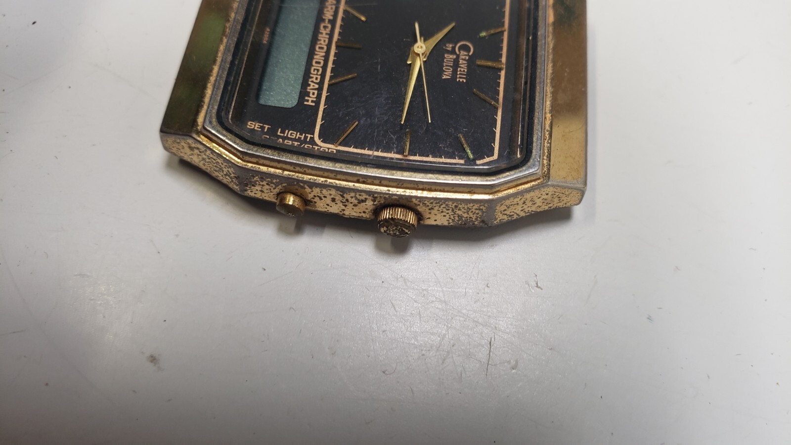 Vintage 1960's 70s Men's Caravelle Bulova Digital Watch dial movement Gold Alarm