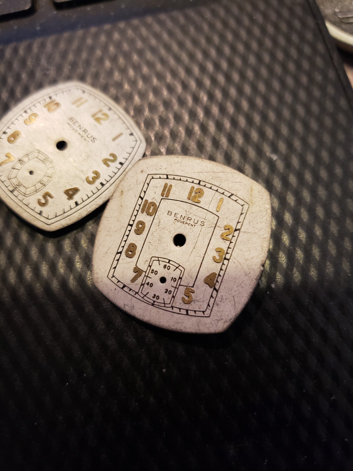 LOT of 2 Vintage 30's 40's Art Deco Men's Benrus Watch Dial White gold w subdial