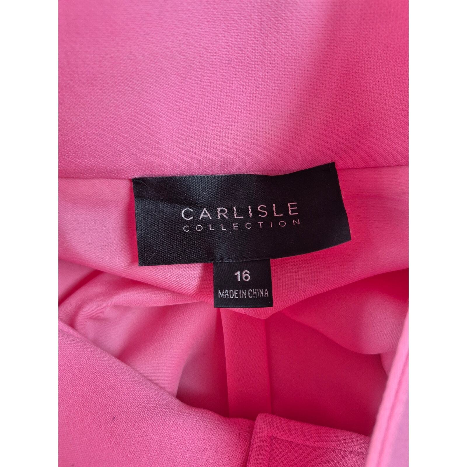 Carlisle Collection Barbie Pink Poly blend Asymmetrical Jacket fully lined zipper pockets Sz 16 in excellent condition and recently dry cleaned.