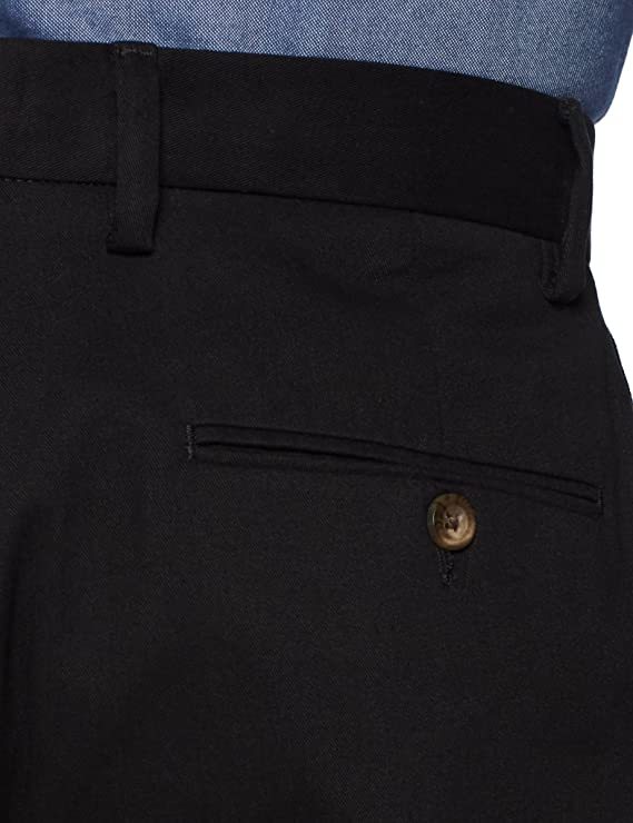 60% Cotton, 40% Polyester Imported Zipper closure Machine Wash A flat-front dressy chino that offers classic style all week long; made to be wrinkle-resistant and easy-care with a traditional relaxed look and fit Generous classic fit that sits at waist, roomy through seat and thigh, with a straight leg; zip fly with button closure, side pockets, and button pockets at the back Work made better: we listen to customer feedback and fine-tune every detail to ensure quality, fit, and comfort
