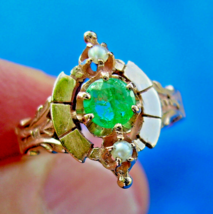 Earth mined Emerald Pearl Antique Ring and 42 similar items
