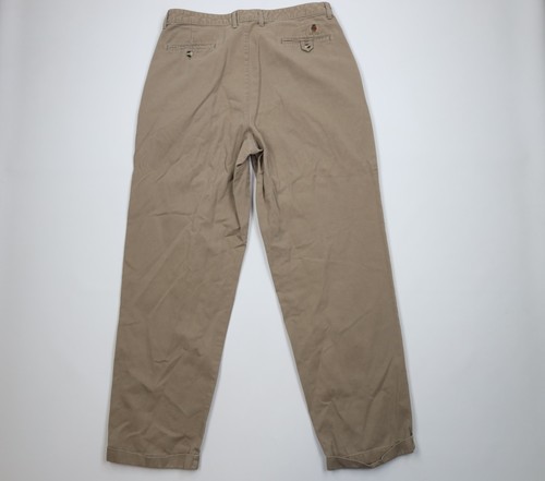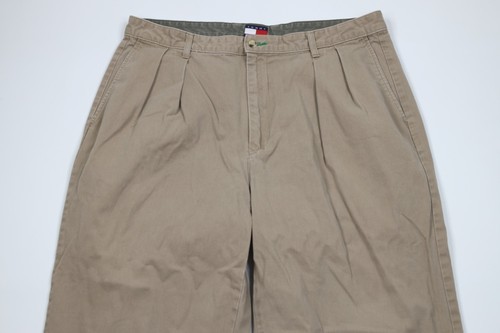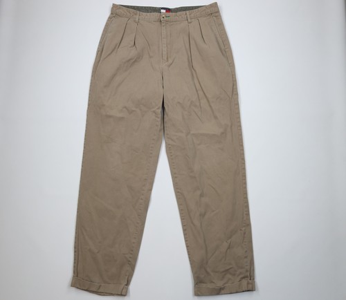 Vintage 90s Tommy Hilfiger Mens 36x34 Faded Cuffed Wide Leg Chino Pants Beige