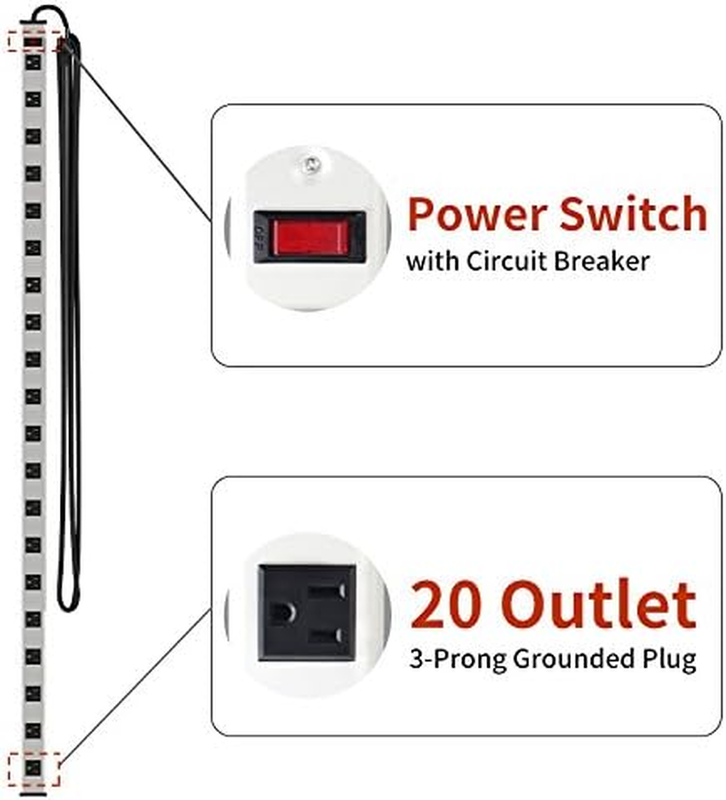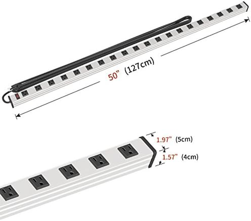 20 Outlet Heavy Duty Metal Socket Power Strip,15-Foot Long Extension Cord With