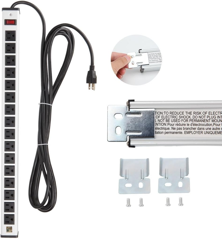 Oviitech 20 Outlets Heavy Duty Metal Socket Power Strip, 15-Foot Long Extension Cord with Circuit Breaker. Mounting Brackets Included,Workshop/Industrial use,ETL Certified