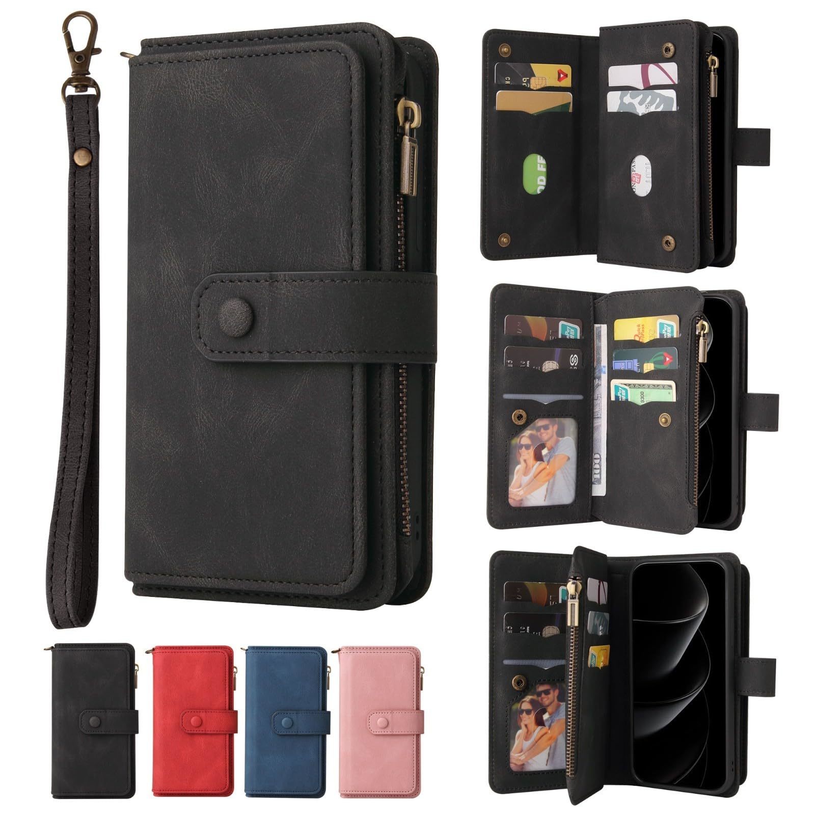 Generic Case for iPhone 13 Pro Max (Color : Red) Wallet Multi Card Slots Zipper