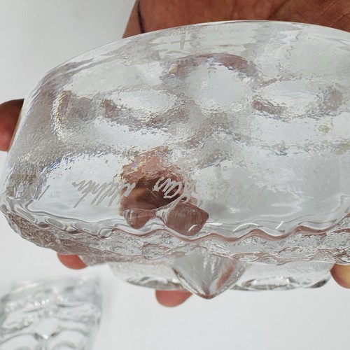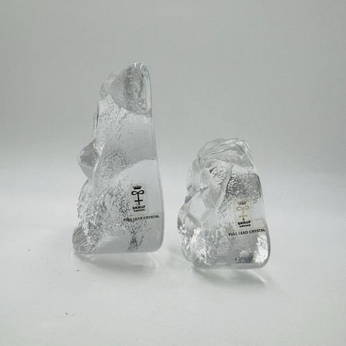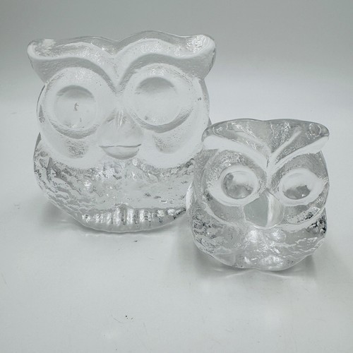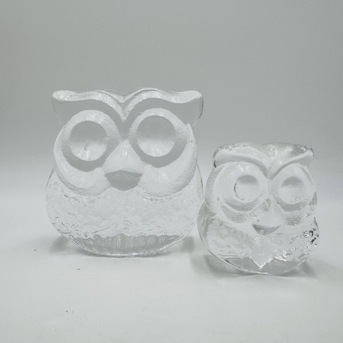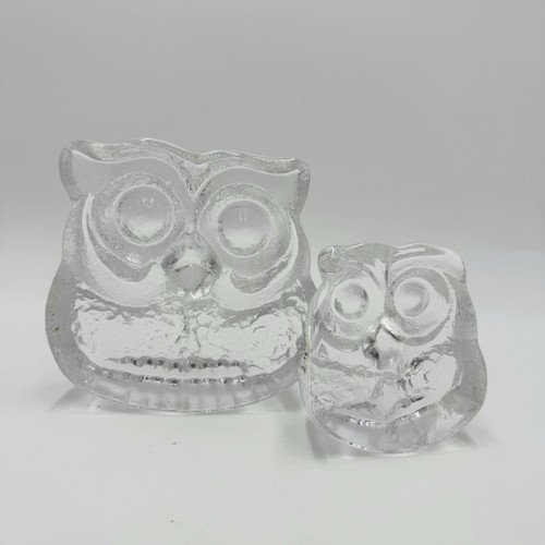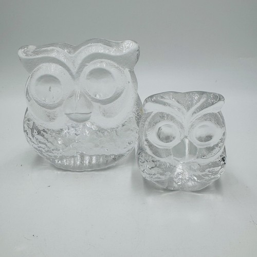 Skruf Sweden art glass owls figurines frosted Signed 1974 MCM
