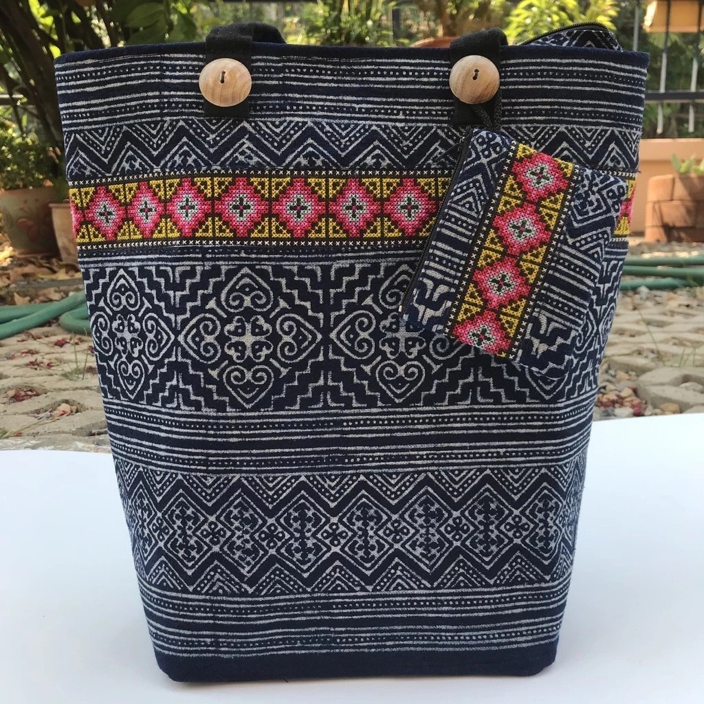 Handmade Thai Indigo Cotton Bag – Boho Ethnic Shoulder Tote