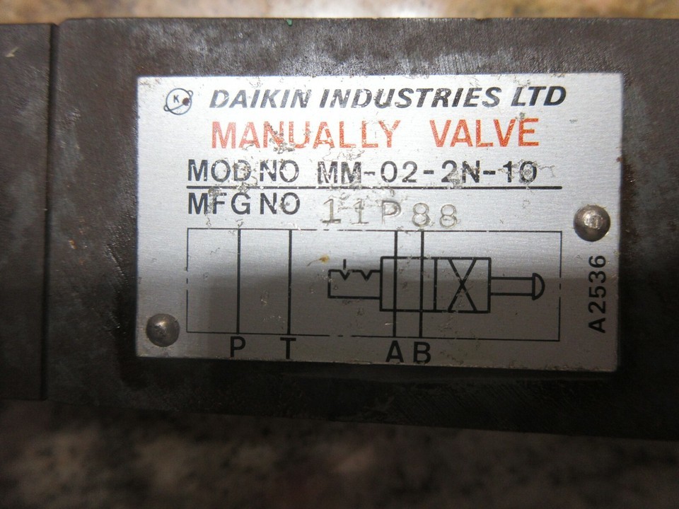 DAIKIN MANUALLY VALVE MOD MM-02-2N-10 MFG 11P88 A2536 MIYANO ATS-80S CNC LATHE