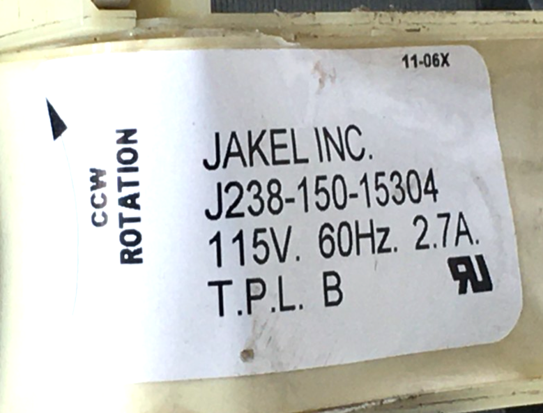 JAKEL J238-150-15304 119410-00 Inducer Blower Motor 115V 60Hz 2.7 A used #MS435