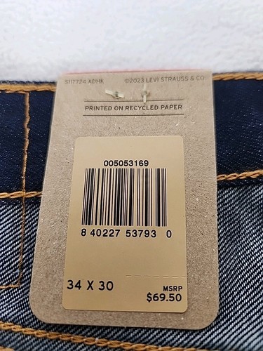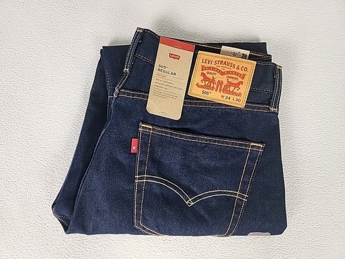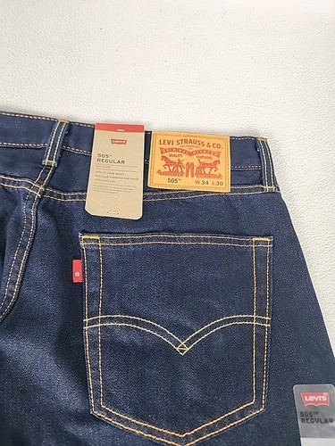 Levi's 505 Eco Regular Fit Zip Fly Straight Leg Denim Jeans 34X30 Mens Dark Blue