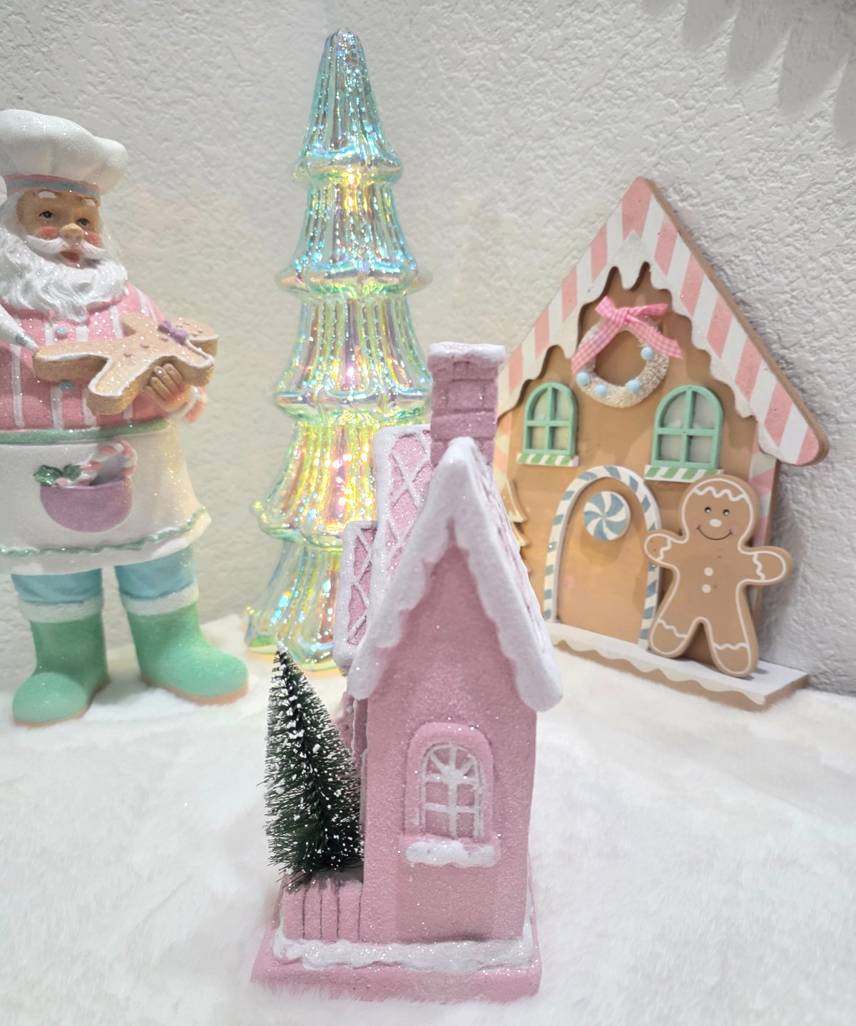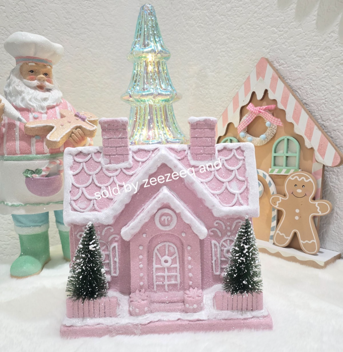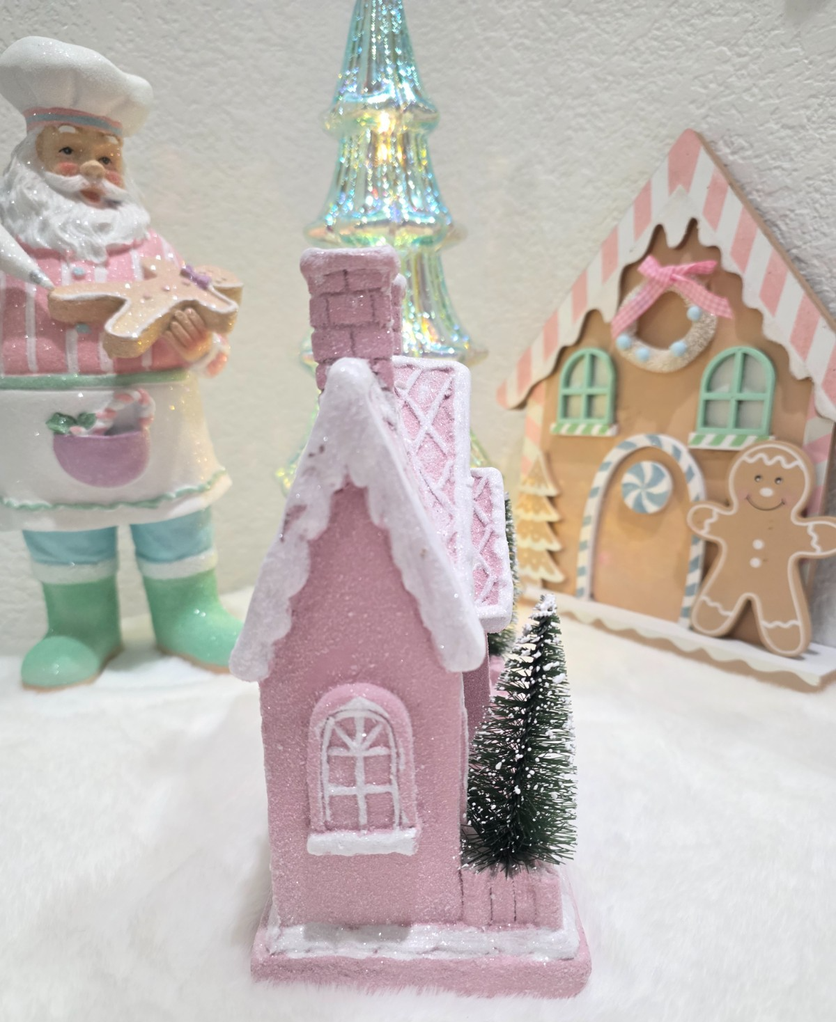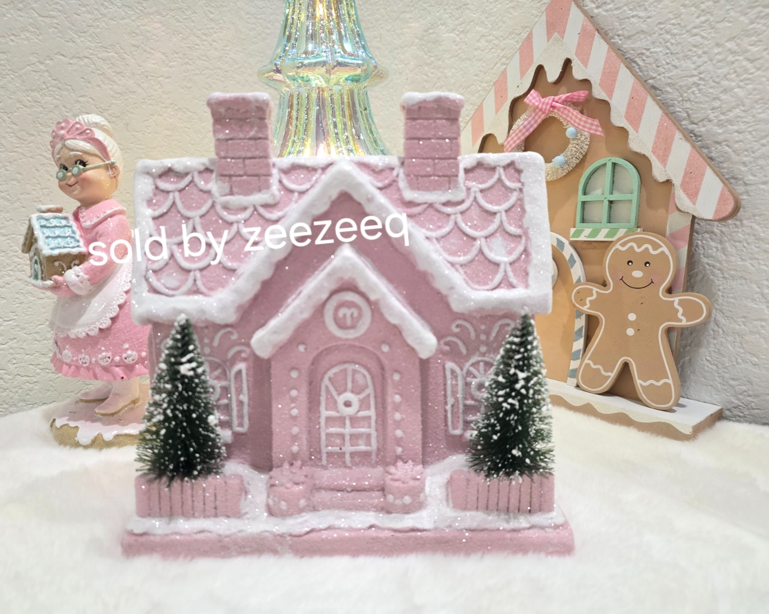 Christmas Pastel Pink Gingerbread House Figurine Figure 8" NEW