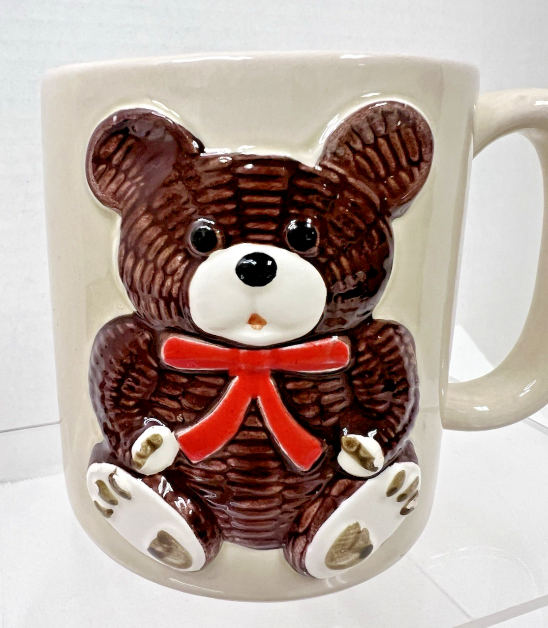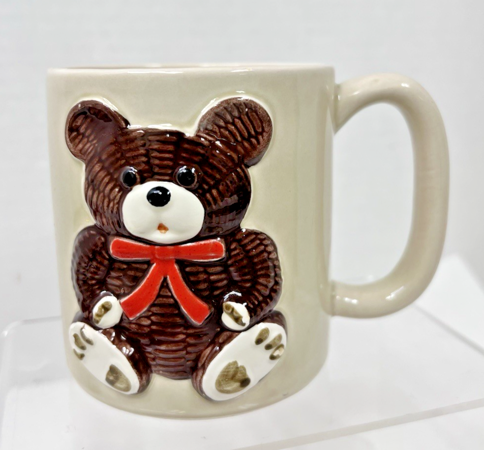 Vintage Otagiri Wicker Teddybear Coffee Mug Hand Painted Great Shape