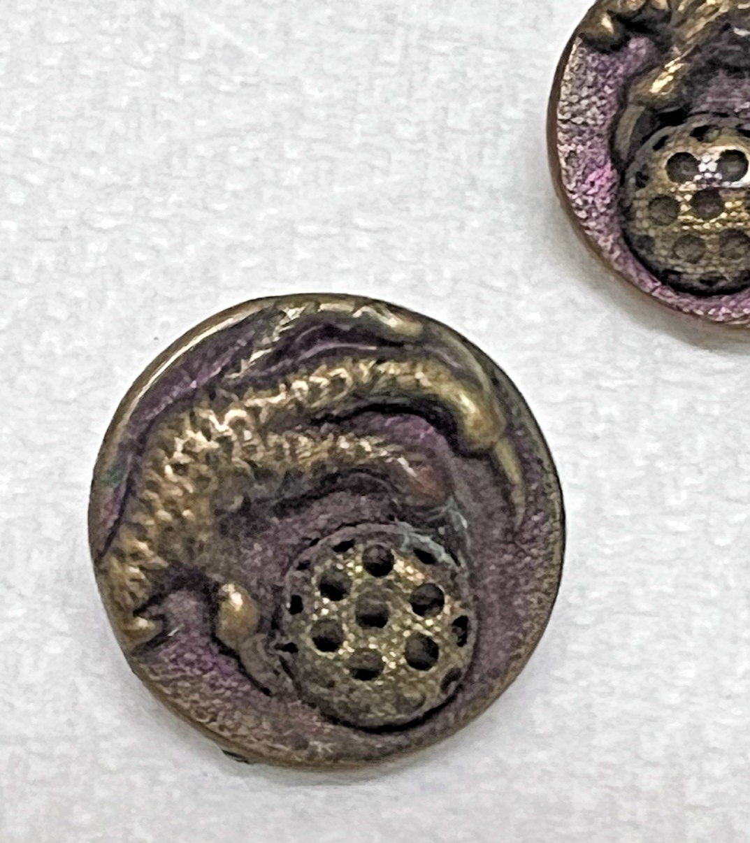 3 Antique Round Metal Dress Buttons Bird and similar items