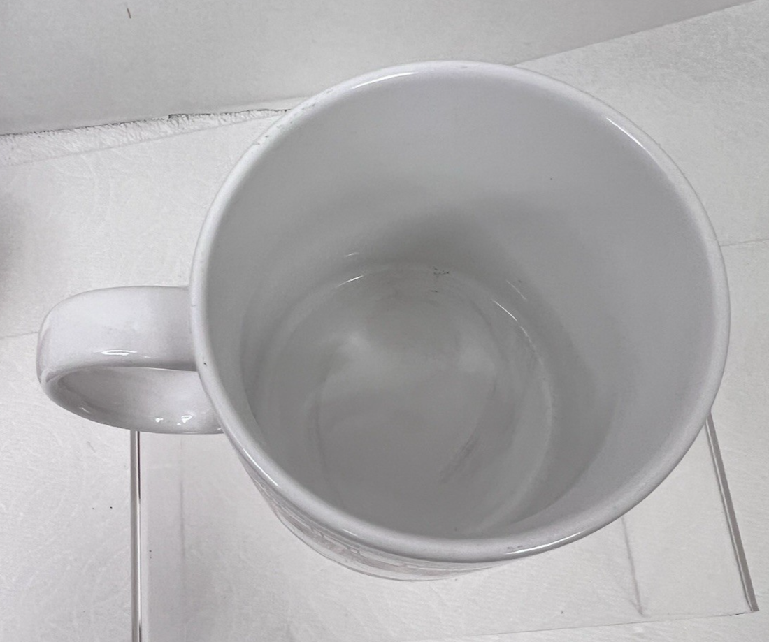 It stands 3 7/8 x 3.5 and 5 across with the handle no chips cracks or signs of use