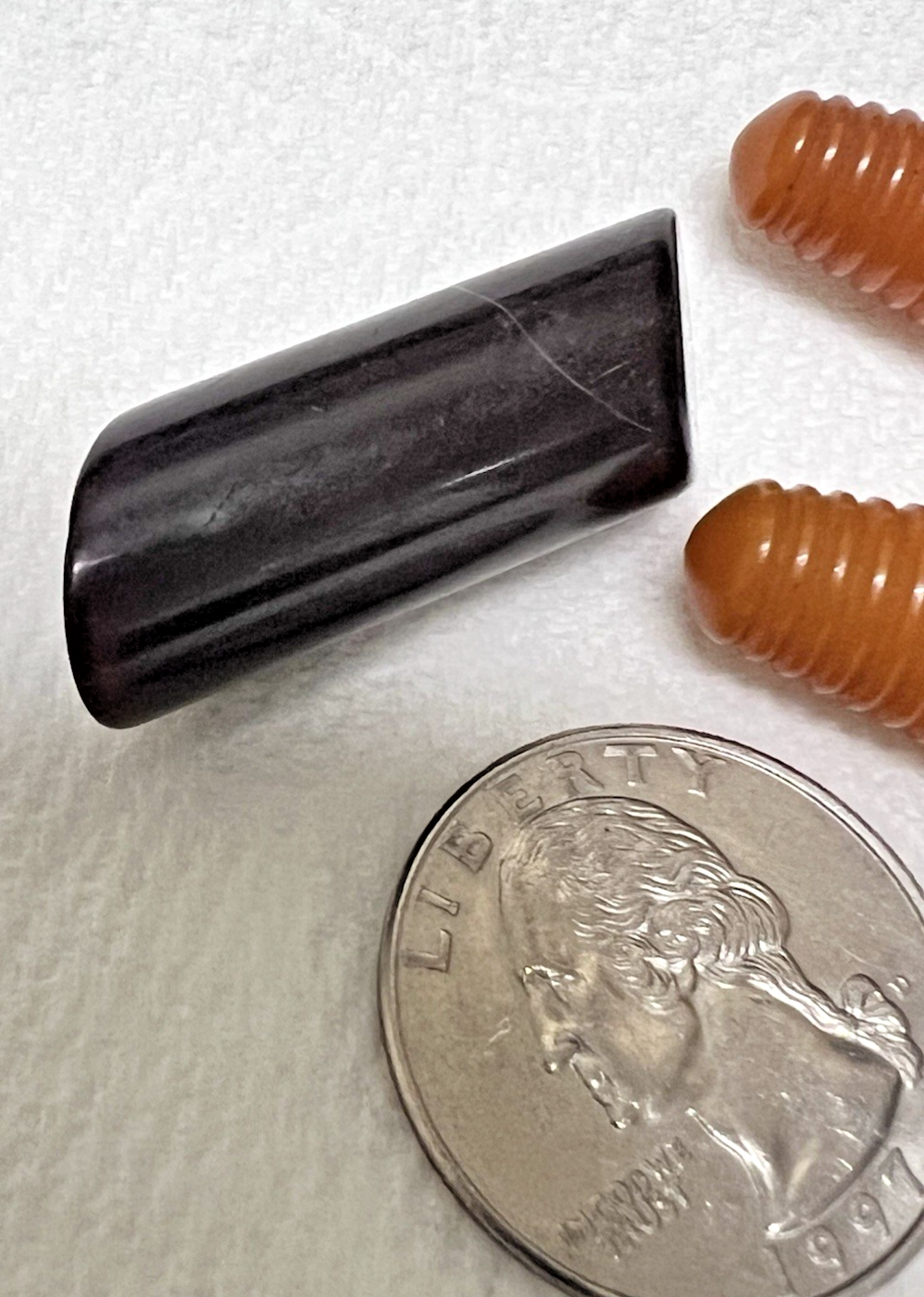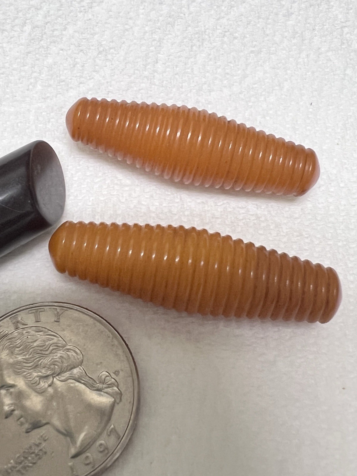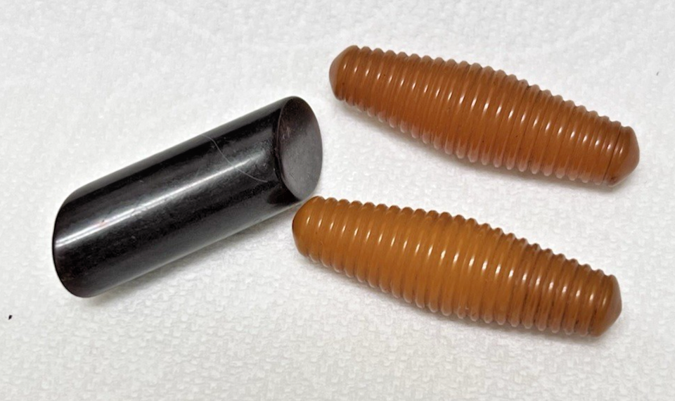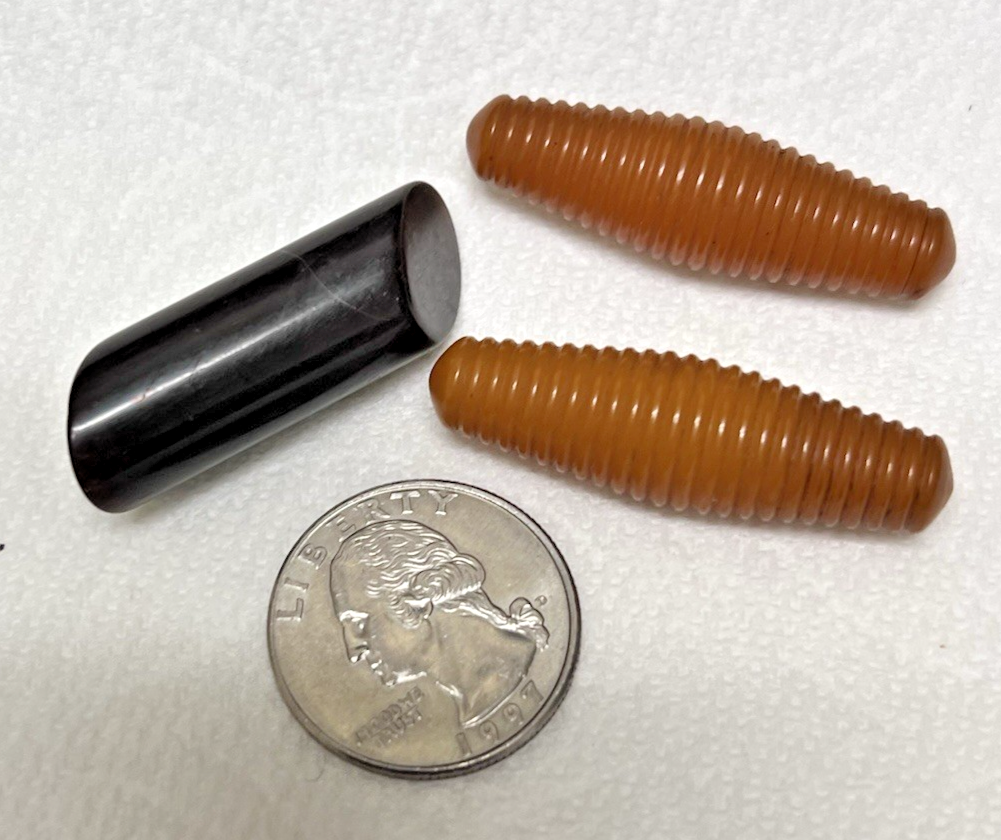3 Vintage Hard Plastic & Bakelite Buttons Toggles 2 Matching w Ribbed Edges