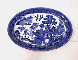 Antique Ironstone Blue Willow Tiny Oval Platter 6 7/8 x 4 7/8 Inch