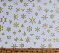 Cotton Snowflakes Gold Metallic on White Fabric Print by the Yard D502.75