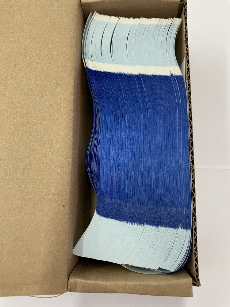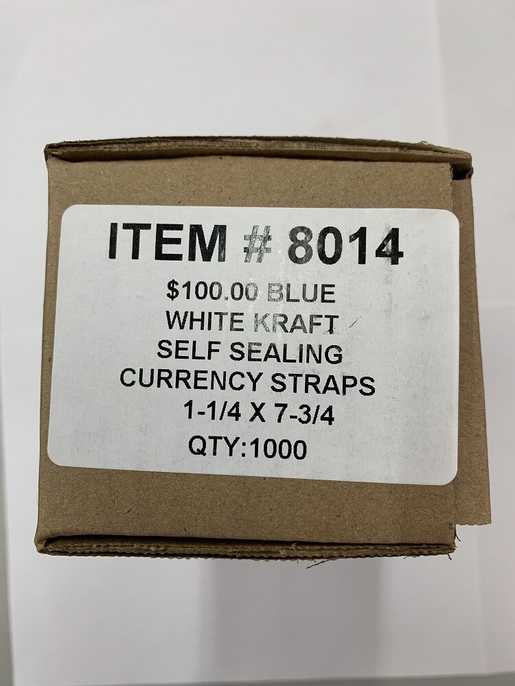 We use 50 lb. paper versus an industry standard of 45 lbs. We have developed a revolutionary new method of applying the latex adhesive so there are no glued sheets that need to be pulled apart. More and more banks are switching to straps due to their greater versatility The 1 1/4" straps are available in solid bar edges. Large glue overlap area for easy size adjustment. These currency straps are great for banks, supermarkets casinos, arcades, hotels, retail shops, currency exchanges, laundromats and much more. NF String currency straps are packed 1000 straps per box.