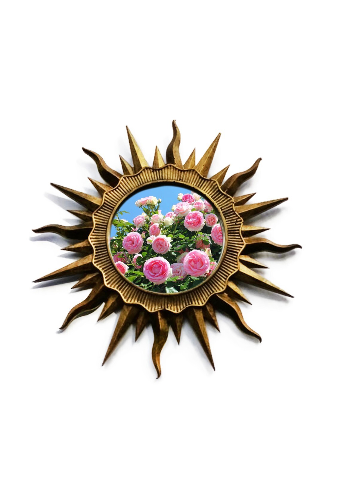 Handmade sunscreen mirror. This mirror with sunlight is made of epoxy resin.Round, handmade designer mirror on the wall. It is a wonderful aesthetic vintage product. Made of resin. An environmentally friendly product. This is a modern, handmade wall art.