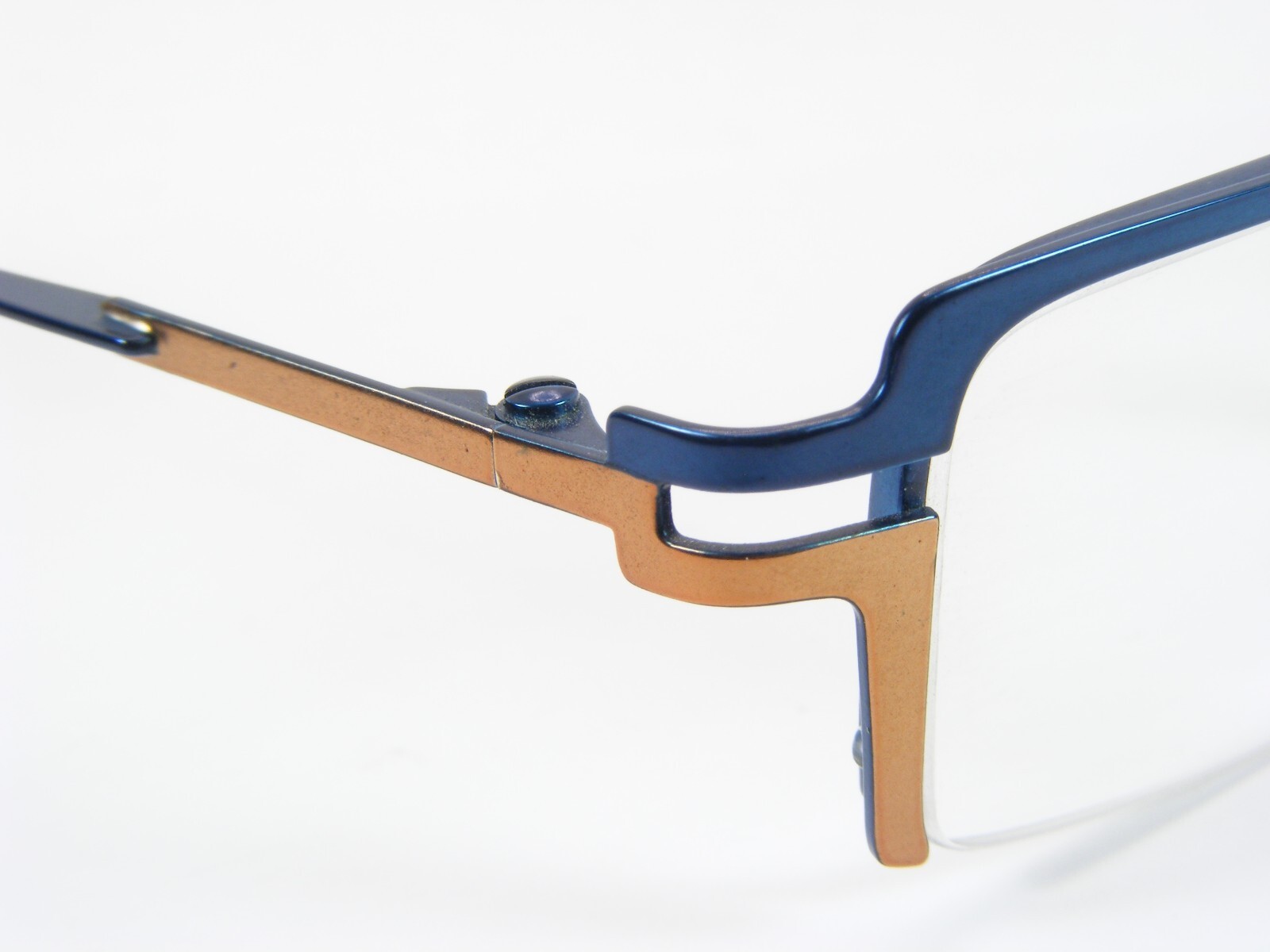 KAOS EIGHTY-ONE 3 Blue /Bronze UNIQUE RARE EYEGLASSES GLASSES FRAME 49-19-135mm. (N750) No scratches on the frame / there are reflections from the photo lamps. Kaos astonishes and transforms traditional design through a kaleidoscope of colors and accelerated sensations. This line presents an image between reality and fiction almost reminding one of a character in a futuristic comic. Style and comfort in everyday use. A pair of glasses is not just an accessory; it provides the first hint of an individual?s personality. The wearer must enjoy a frame and feel that it is completely consistent with his or her look and mindset. A great pair of glasses, with all its detail and complexity must above all be an extension of the individual. Returns are always FREE for any reason. If you don't l