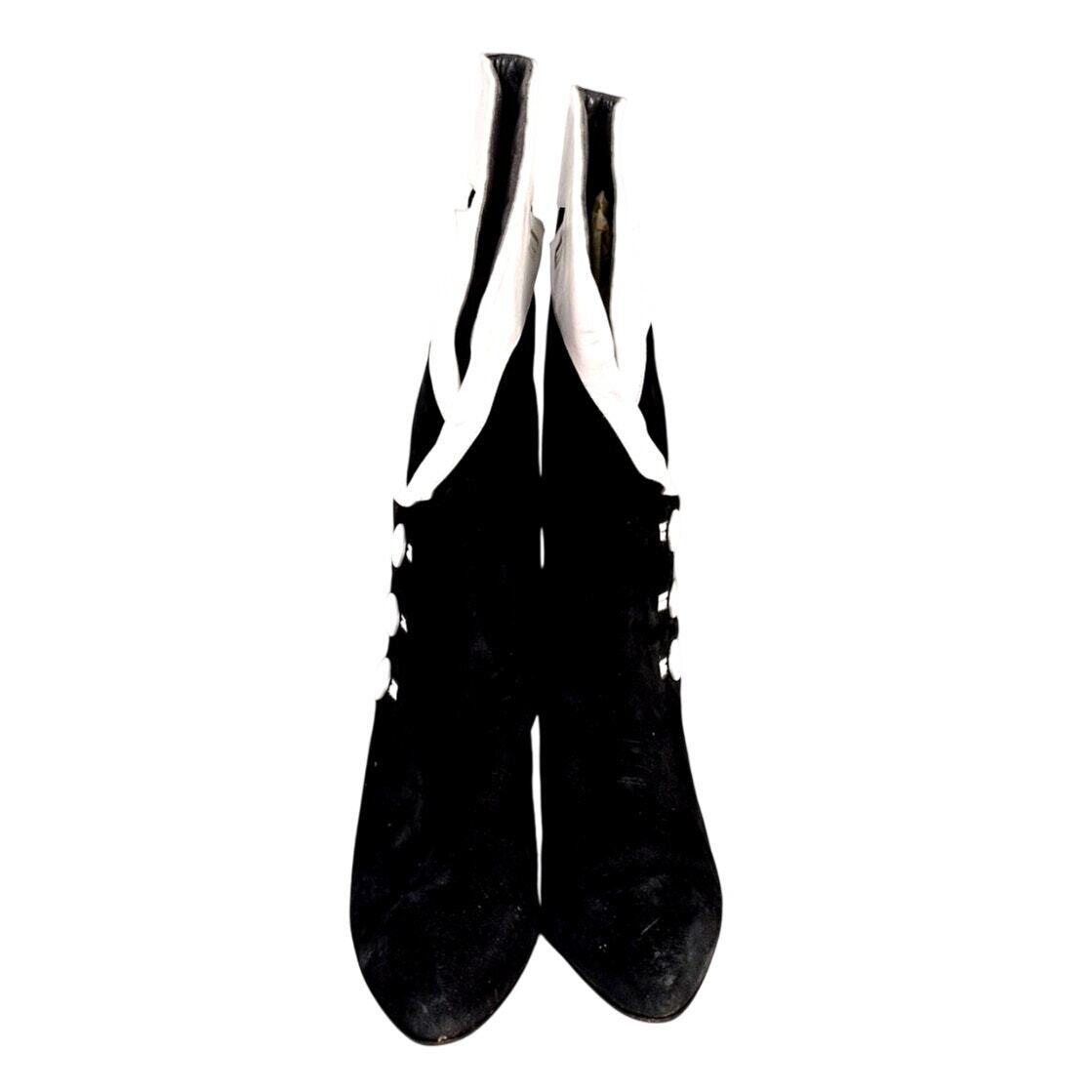 Rare Enzo Albanese Roma Vintage 1980?s Mob Wife Esthetic Black/White Button Victorian/Futuristic Boots Booties Sz 39 ( US 8.5 to 9)- all Suede and white leather. The buttons are to open and close. Made in Italy.