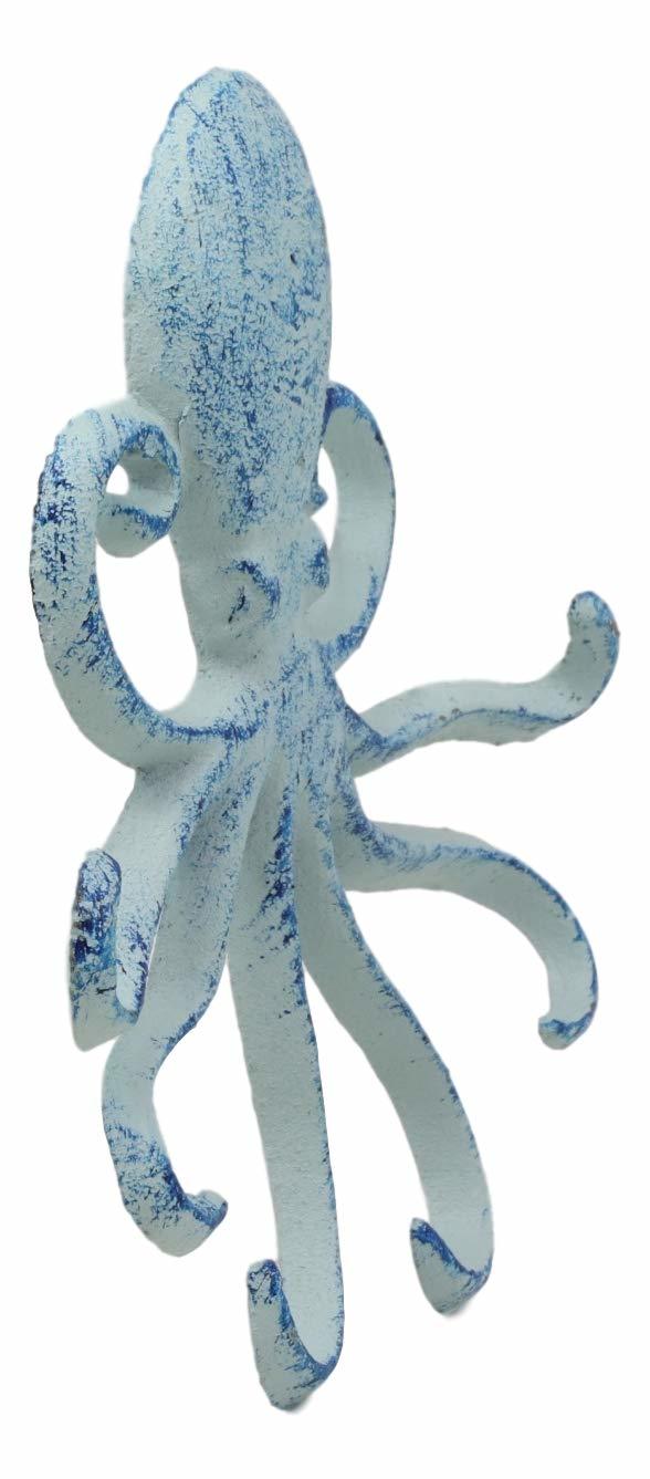 6.5"H Cast Iron Nautical Sea Octopus Teal Blue Wall Keys Hook Cthulhu Kraken