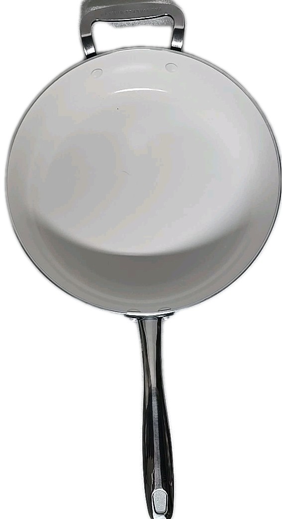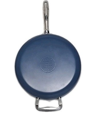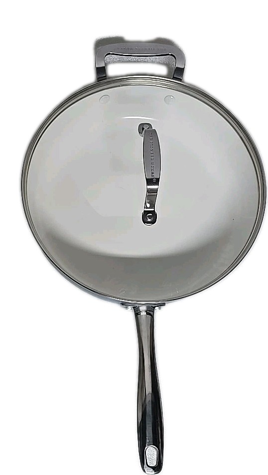Pan measures approximately 12" diameter x 21.75" wide (including handles) x 2.75" tall (not including lid)