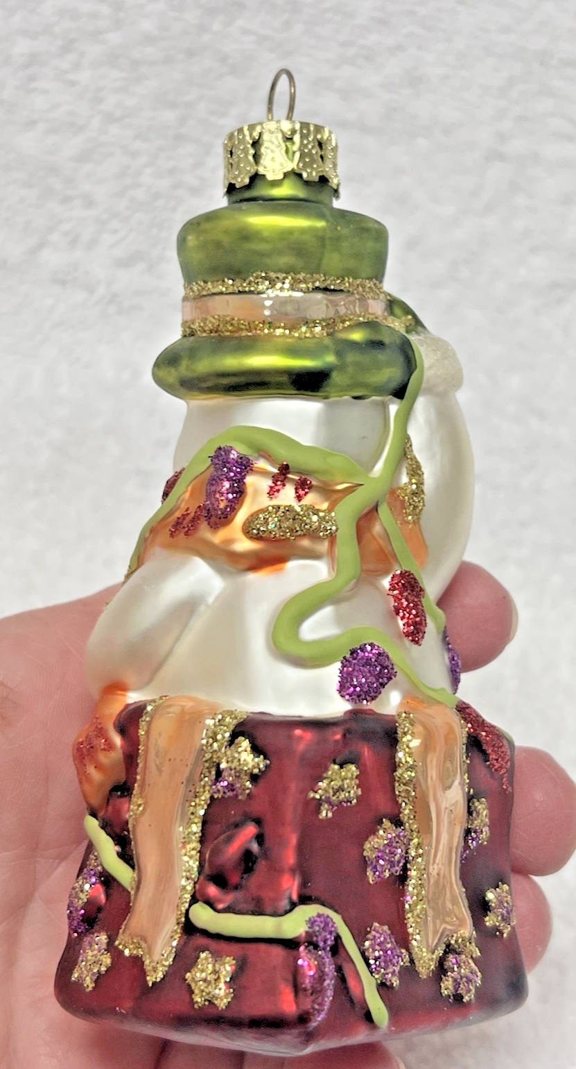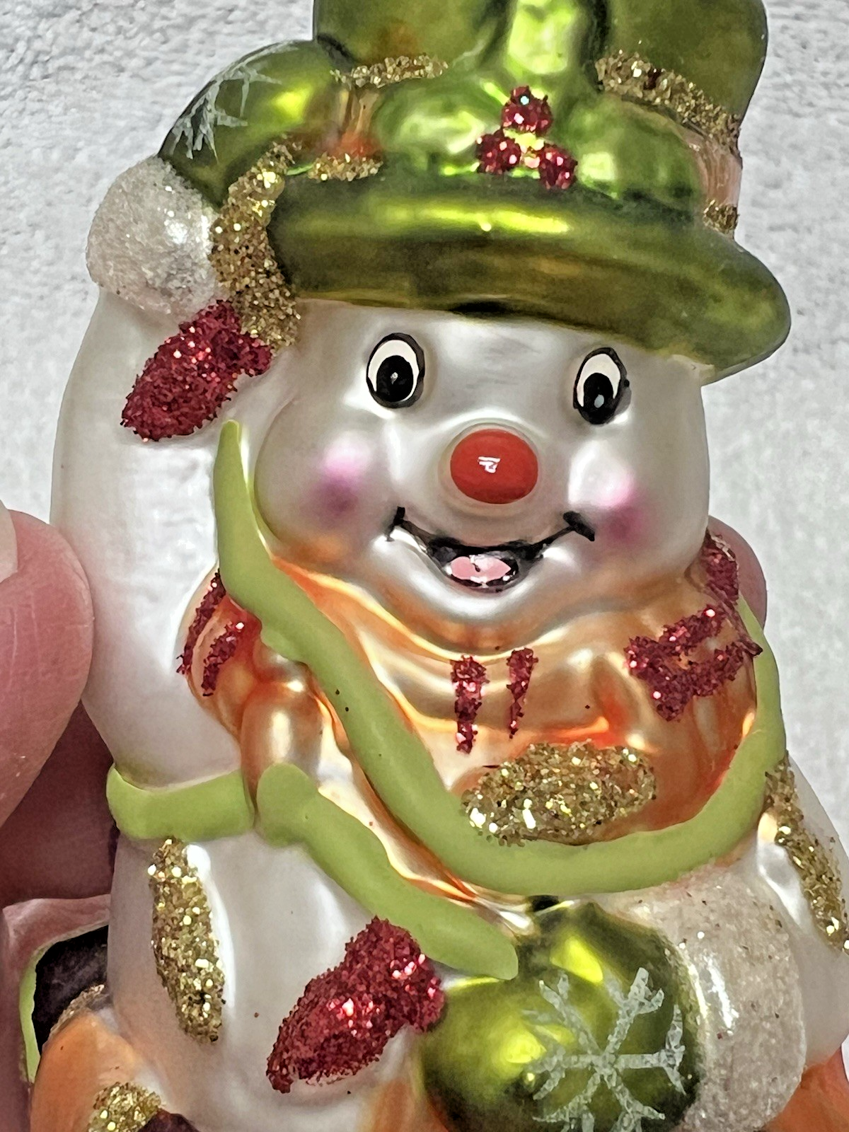 Snowman In Present w Lights Stars More Christmas America Ornament 4 1/4 inch