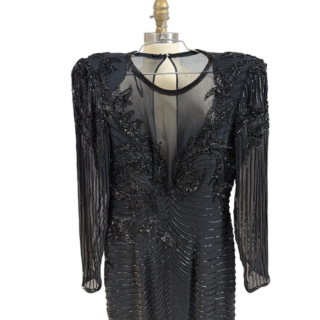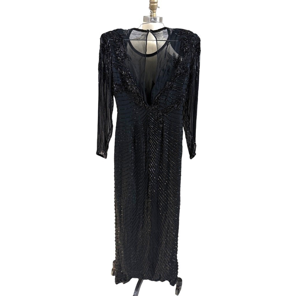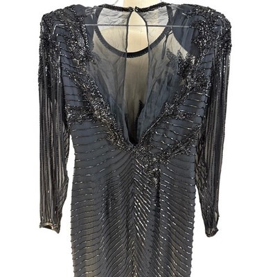 VTG 1980s AJ Bari Silk Black Dress Beaded and similar items