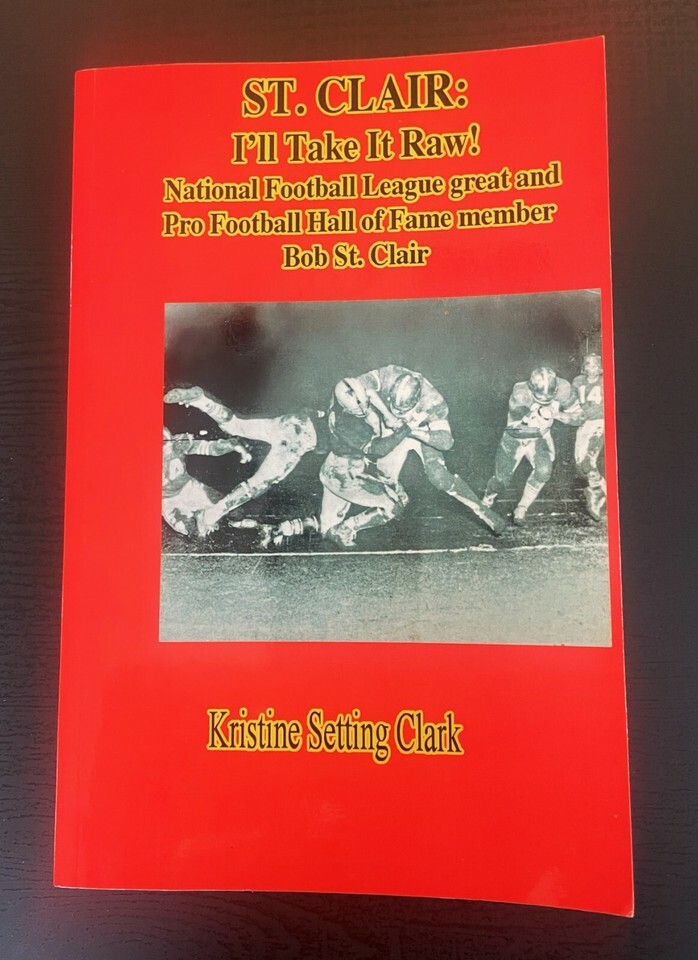 Up for sale is this lightly used autographed by Bob St. Clair book written by Kristine Setting Clark detailing the life and career of Pro Football Hall of Famer Bob St. Clair.