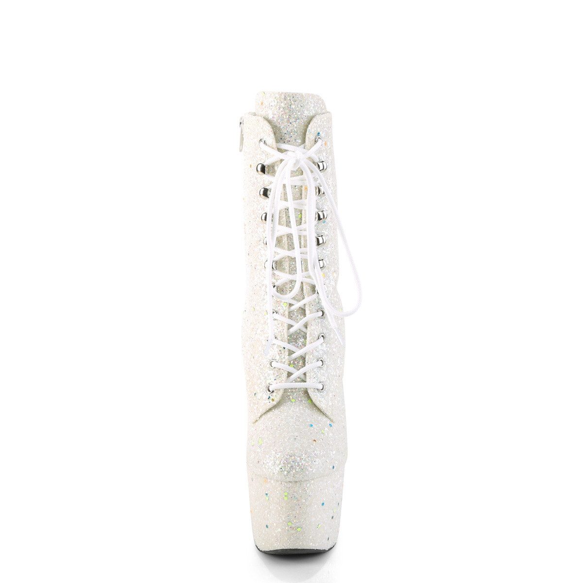 SALE PLEASER 7" Heel Platform White Glitter UV Reactive Ankle Women's Boots 8