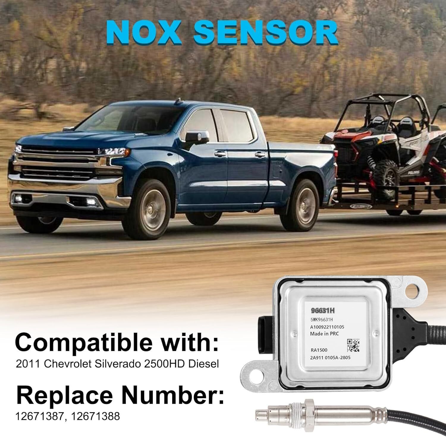 Fitment: This Upstream Downstream NOx Sensor Set is compatible with 2011 Chevrolet Silverado 2500HD diesel Part Number: Upstream: Replace for 12671387. Downstream: Replace for 112671388. Ensuring a perfect fit and function equivalent to the original sensor Premium Quality: Manufactured using high-grade materials to ensure durability, reliability, and a long service life even under harsh operating conditions NOx Sensor Set: Upstream: Measures NOx levels before treatment, helps in optimizing engine performance. Downstream: Measures NOx levels after treatment, ensures the effectiveness of the emission control system Easy Installation: Designed for a straightforward installation process, allowing for quick and hassle-free replacement of the old or faulty sensor